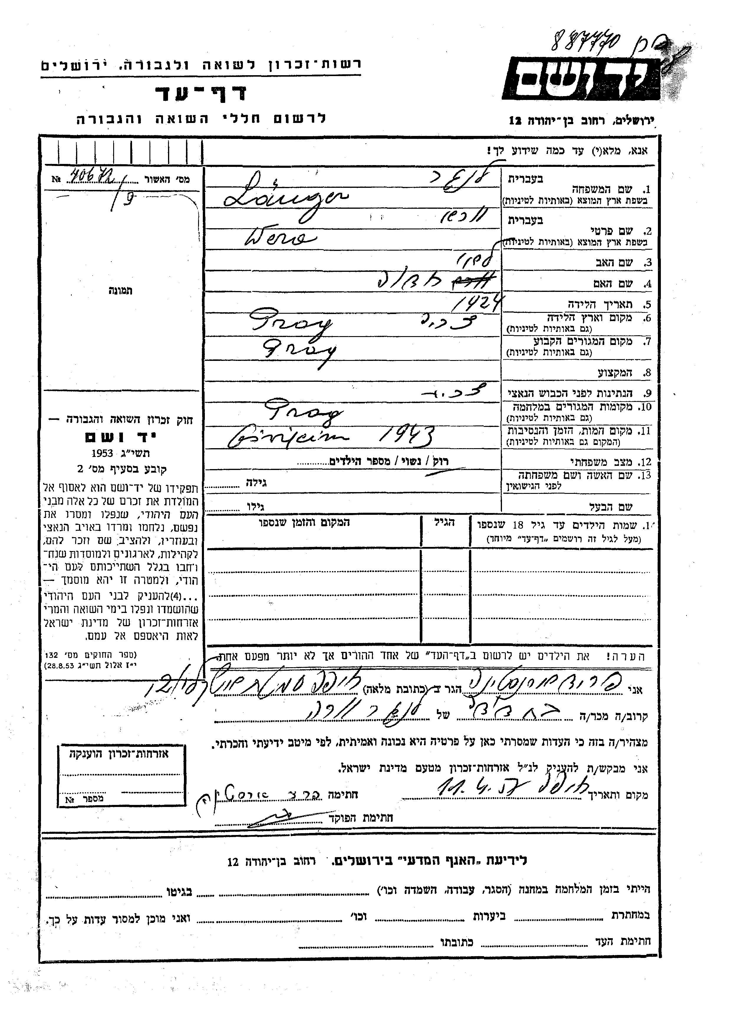 Wera Loinger Langer wurde im Jahr 1924 in Prag, Tschechoslowakei geboren. Sie war die Tochter von Leo. Sie war Ledig. Vor dem Zweiten Weltkrieg lebte sie in Prag, Tschechoslowakei. Während des Krieges war sie in Prag, Tschechoslowakei.