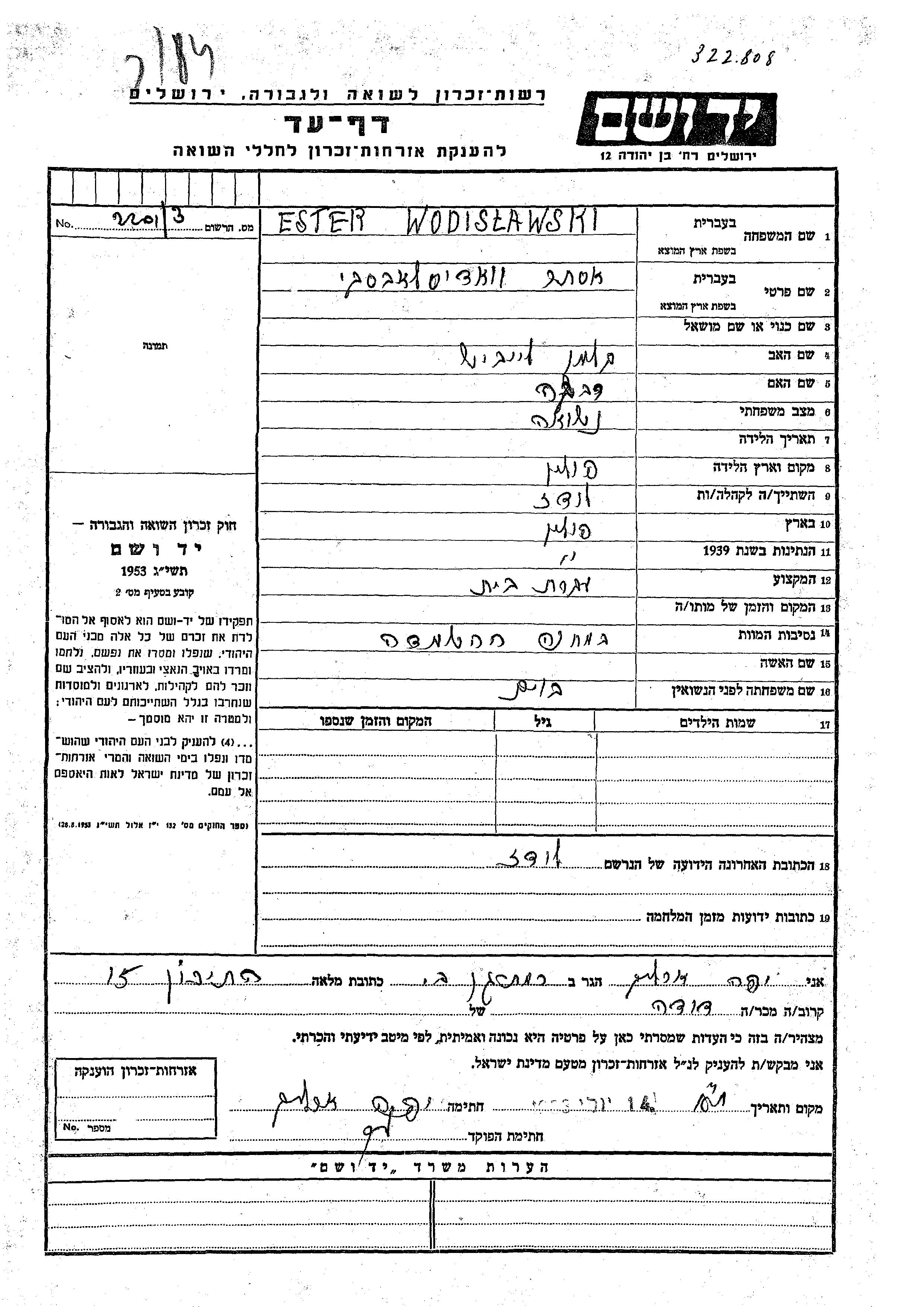 Suche nach einem Todesjahr im Zeitraum der Holocaust: 1933 bis 1945. Bitte wählen Sie 'Exakt' im Auswahlmenü, um nur nach einem einzelnen Jahr zu suchen, alternativ können Sie die flexibleren Optionen '+/- 2 Jahre' oder '+/- 5 Jahre' wählen.