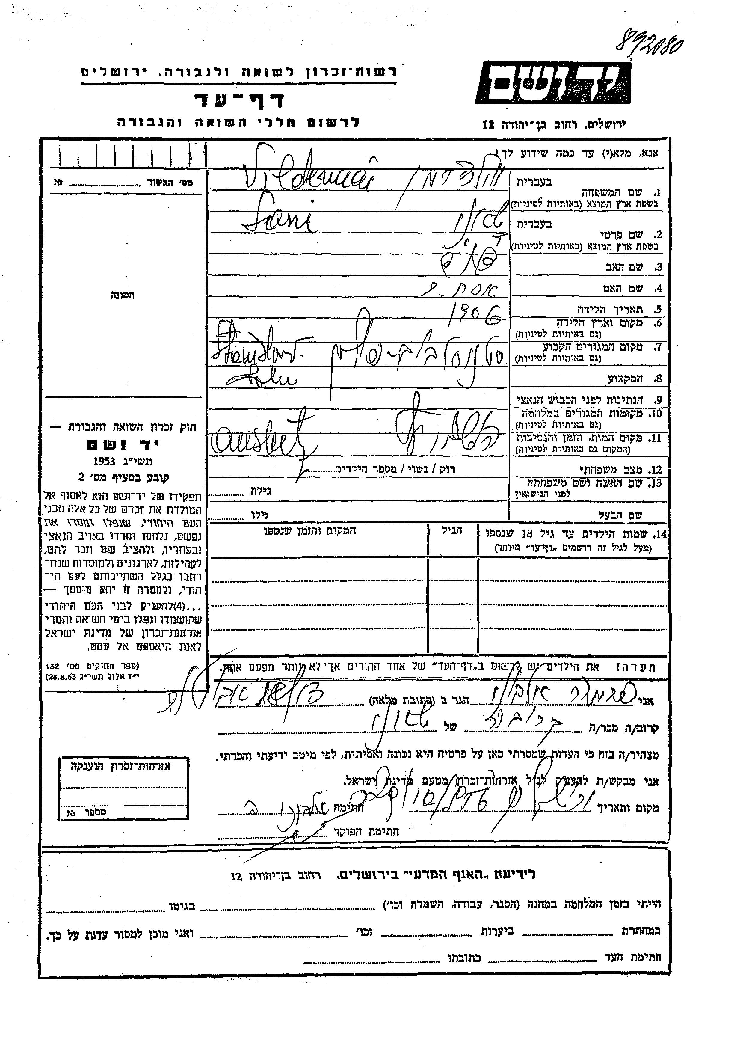 Sani Shani Vilderman wurde im Jahr 1906 in Stanislav, Polen geboren. Er/sie war der/ die Sohn/Tochter von David und Ester. Vor dem Zweiten Weltkrieg er/sie in Stanislav, Polen.