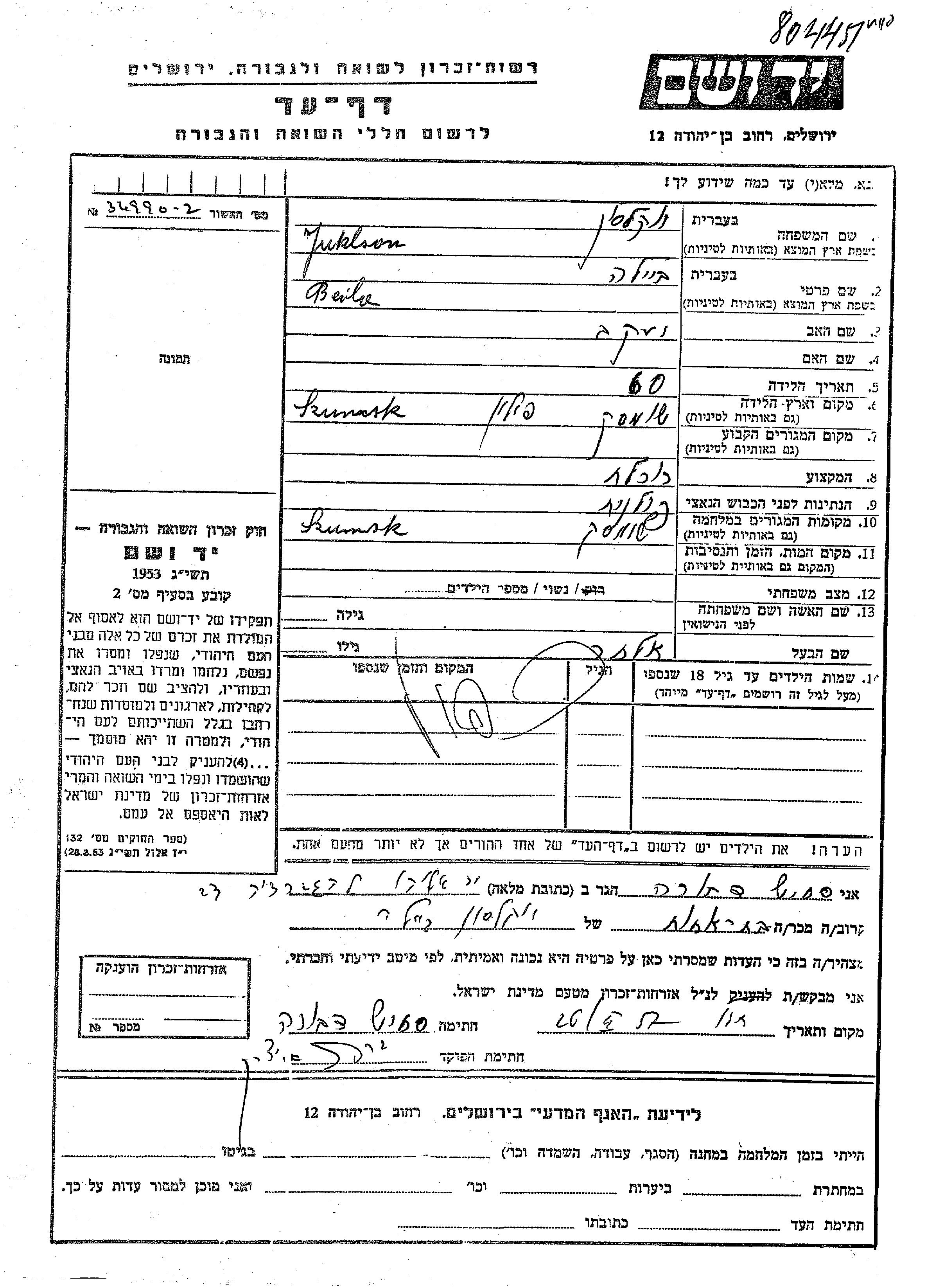 Beila Juklson wurde in Szumsk, Polen geboren. Sie war die Tochter von Yaakov. Sie war Hausierer/-in und mit Alter Verheiratet. Während des Krieges war sie in Szumsk, Polen.