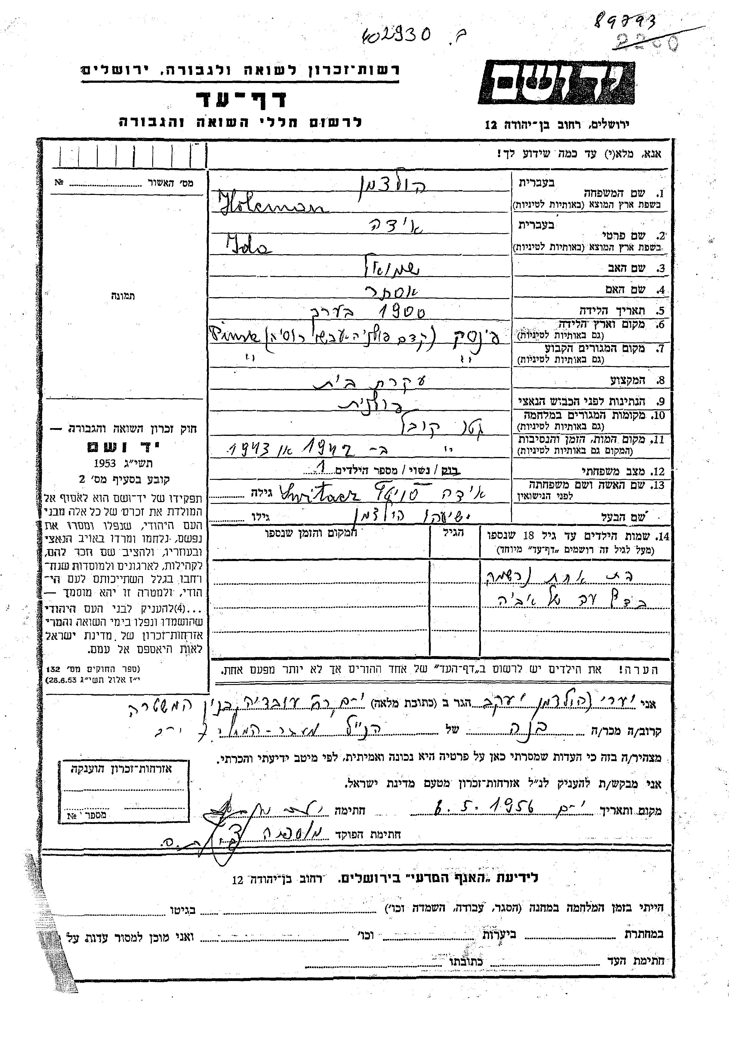 Ida Holcman, geb. Switacz wurde im Jahr 1900 in Pinsk, Polen geboren. Sie war die Tochter von Shmuel und Ester. Sie war Hausfrau und mit Ishiyahu Verheiratet. Vor dem Zweiten Weltkrieg lebte sie in Pinsk, Polen. Während des Krieges war sie in Kowel, Polen.