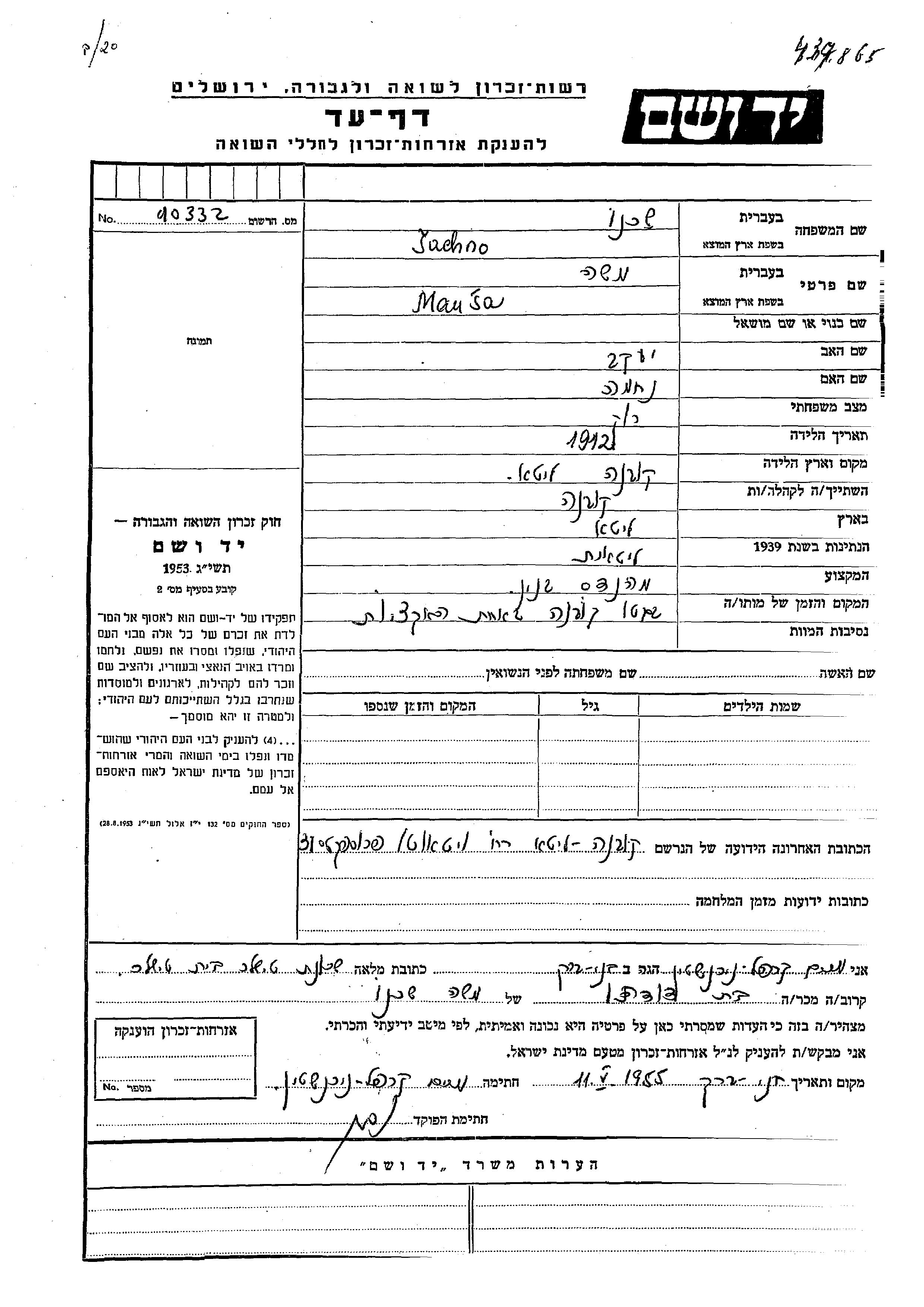 Mausa wurde in der Schoah ermordet. Todesort: Kowno, Litauen.