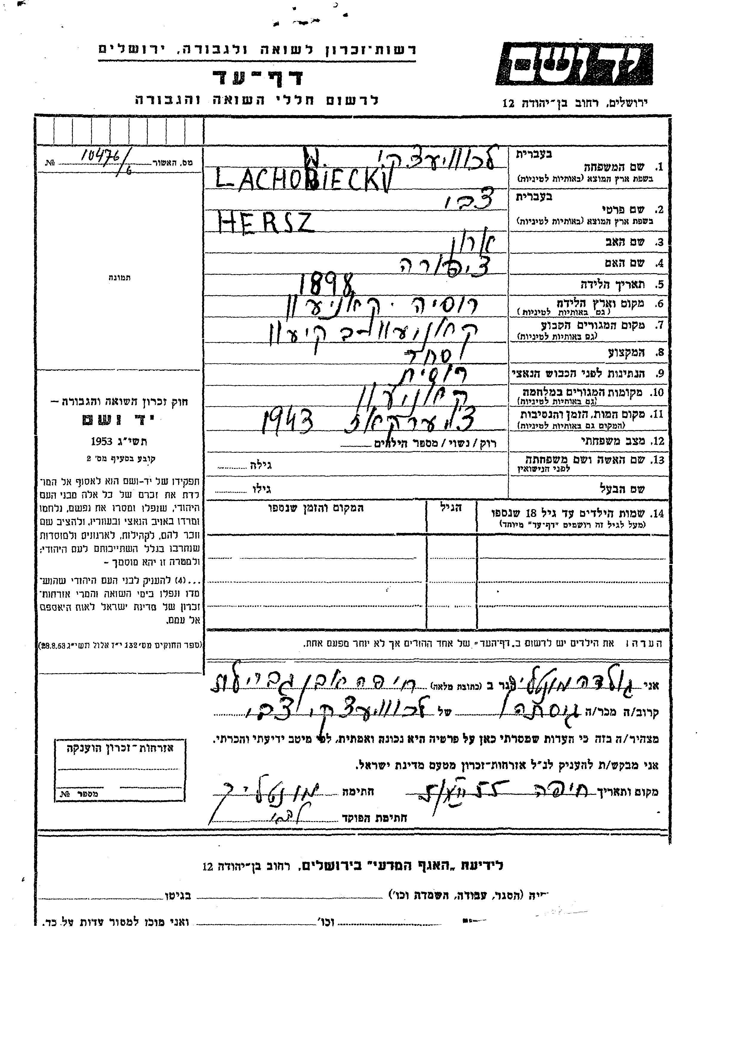Hersz Tzvi wurde in der Schoah ermordet. Todesort: unbekannt im Jahr 1943.