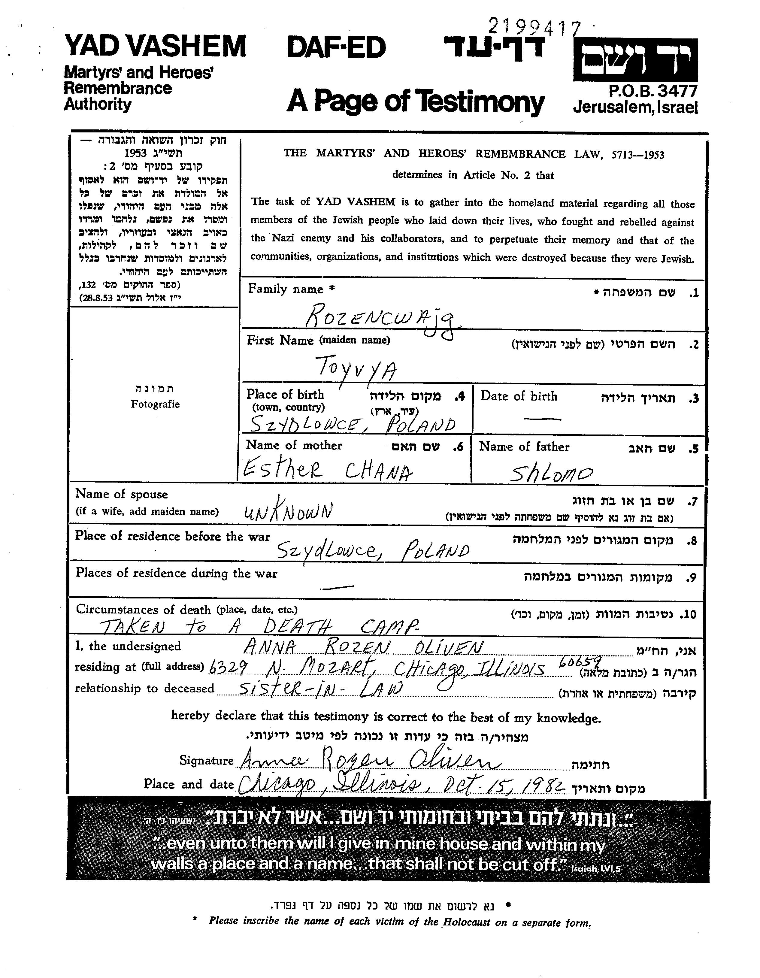 Suche nach einem Todesjahr im Zeitraum der Holocaust: 1933 bis 1945. Bitte wählen Sie 'Exakt' im Auswahlmenü, um nur nach einem einzelnen Jahr zu suchen, alternativ können Sie die flexibleren Optionen '+/- 2 Jahre' oder '+/- 5 Jahre' wählen.