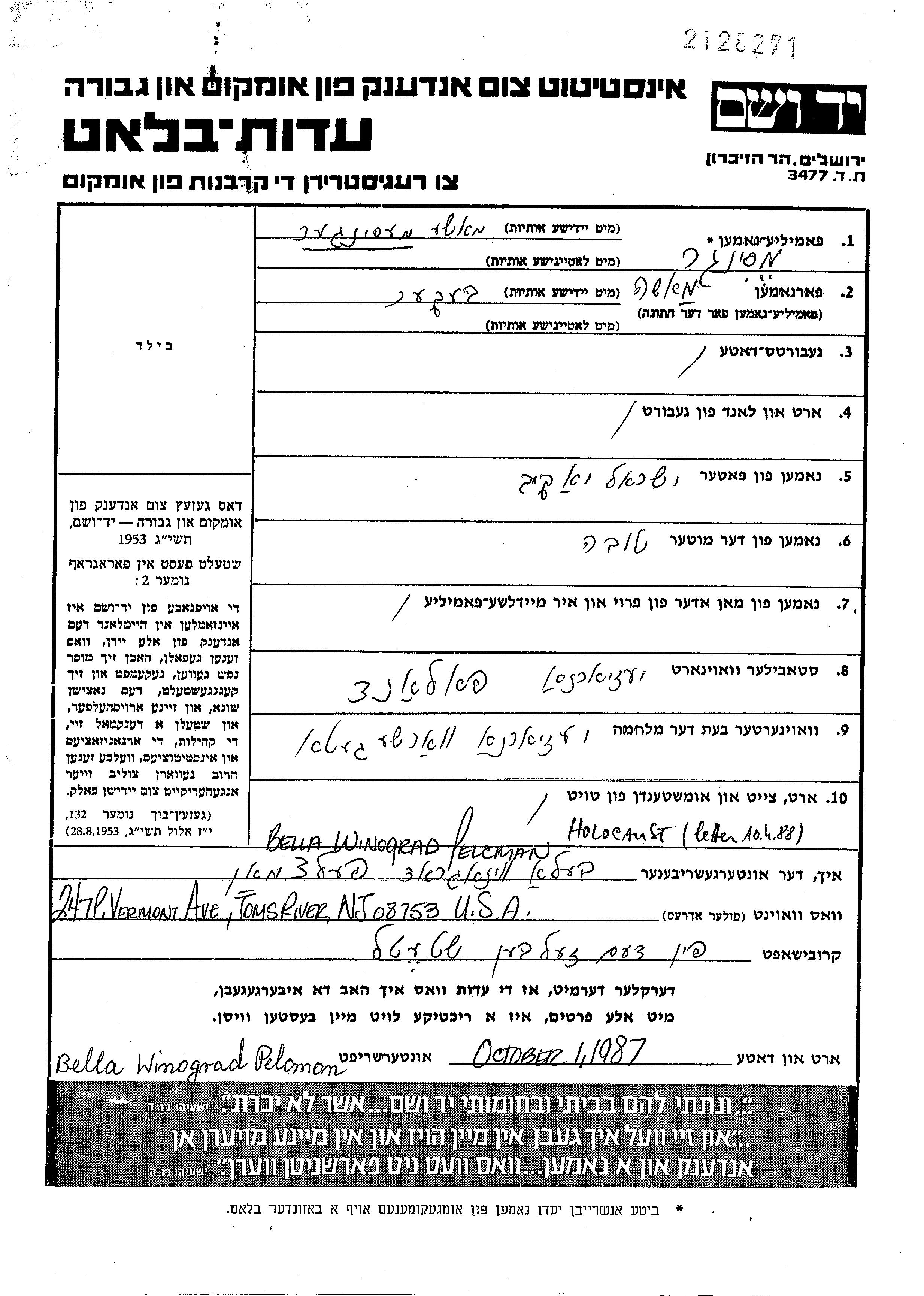 Mashe Messinger wurde Sie war die Tochter von Israel Yakov und Tova. Vor dem Zweiten Weltkrieg lebte sie in Jeziorna, Polen. Während des Krieges war sie in Jeziorna, Polen.