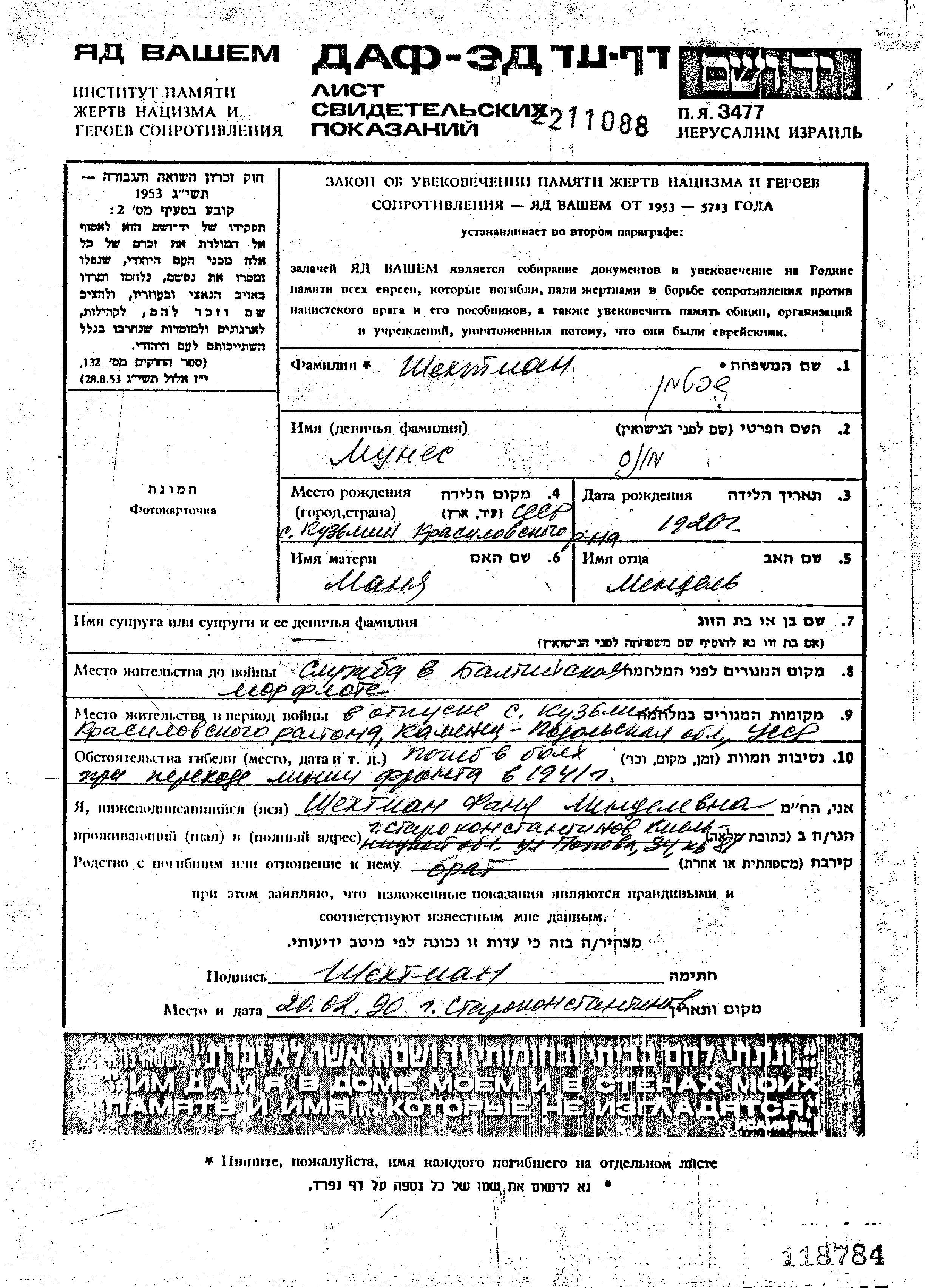 Shekhtman Munes die Sowjetischen Streitkräfte, Gedenkblatt
