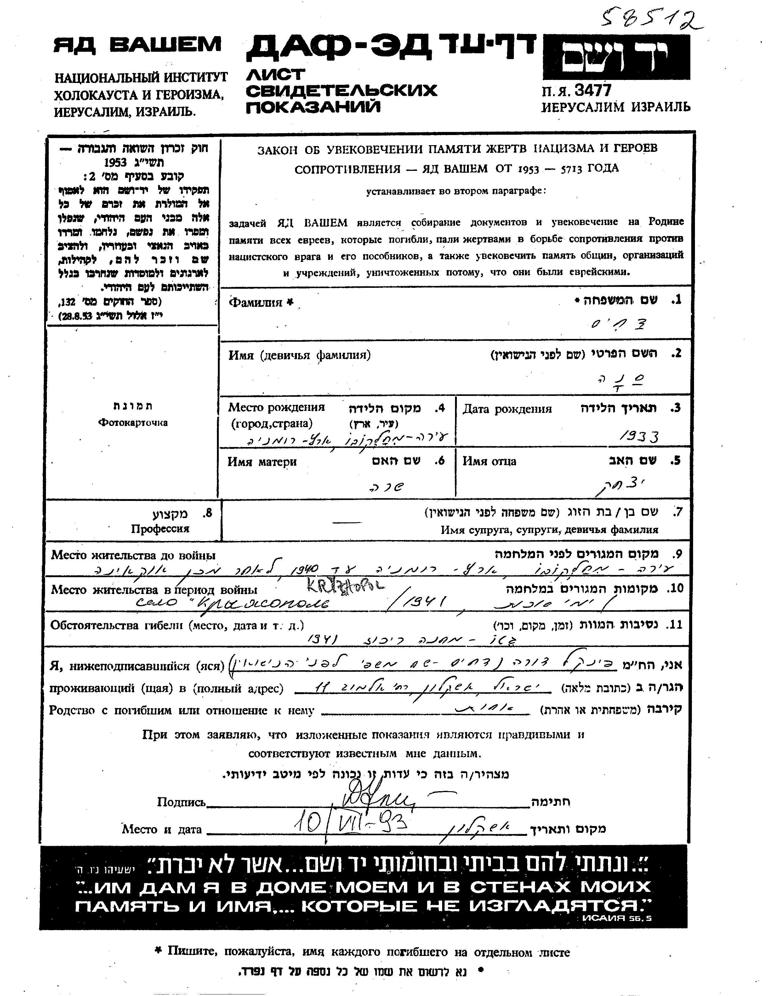 Sona wurde in der Schoah ermordet. Todesort: Kryzhopol, Ukraine (UdSSR) im Jahr 1941.