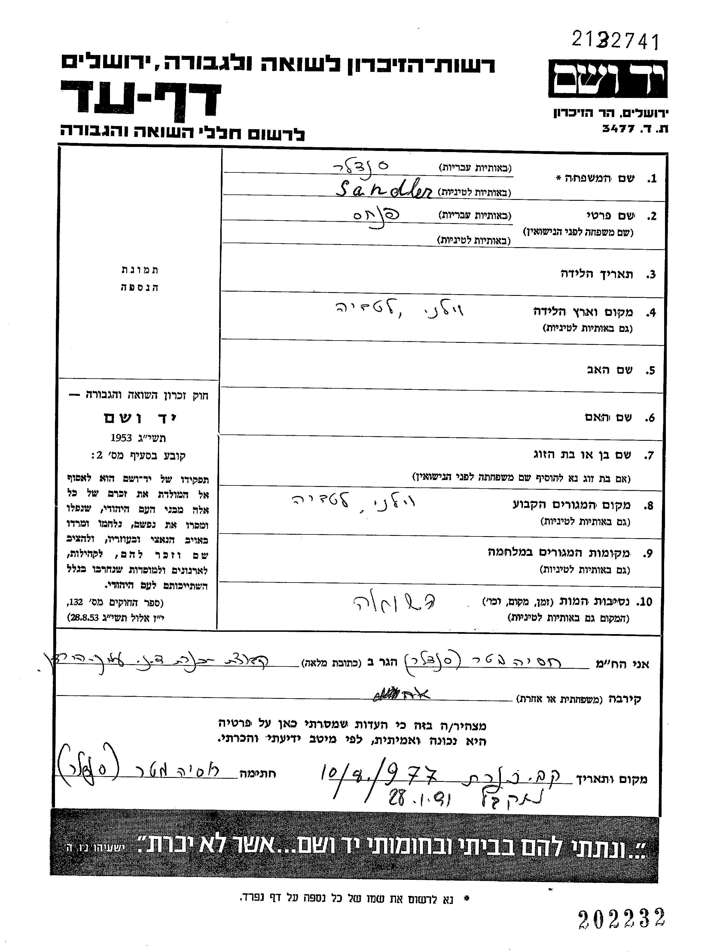 Pinkhas Sandler wurde in Vilani, Lettland geboren. Er war der Sohn von Cvi und Rivka. Vor dem Zweiten Weltkrieg lebte er in Vilani, Lettland.