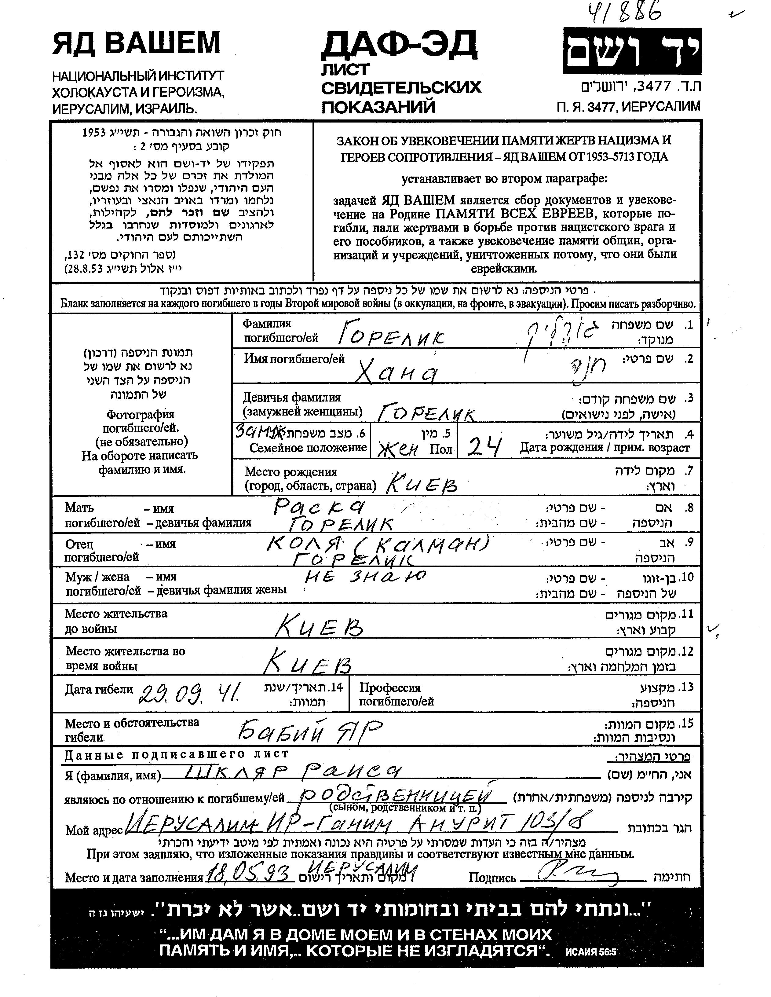 Khana wurde in der Schoah ermordet. Todesort: Babi Yar, Ukraine (UdSSR) im Jahr 1941.