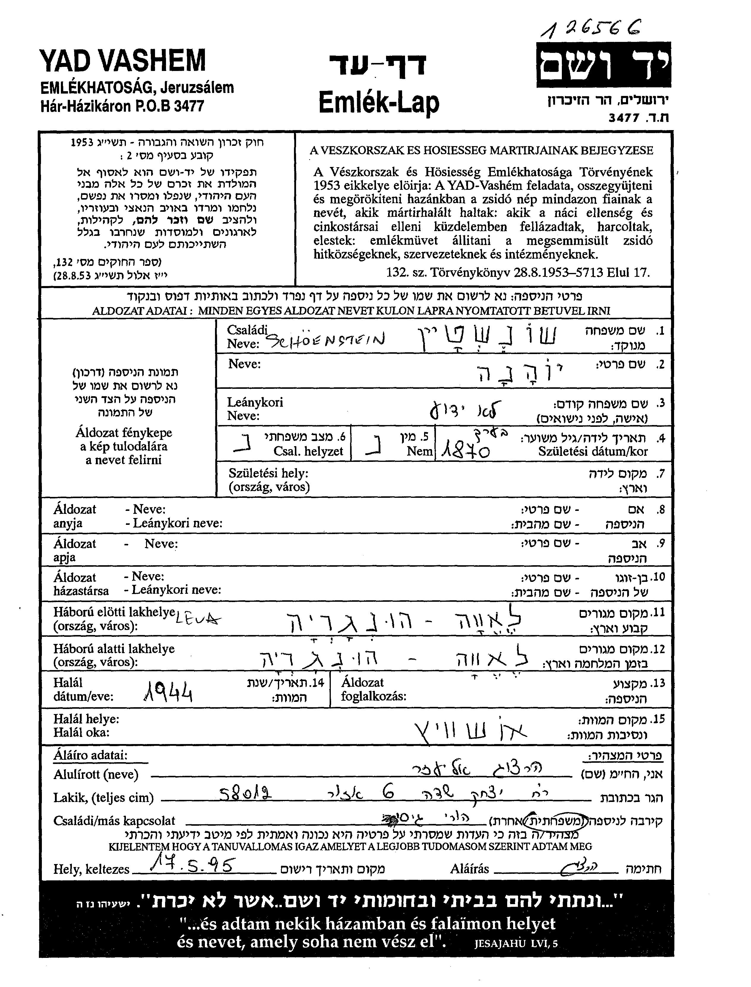 Yohana wurde in der Schoah ermordet. Todesort: Auschwitz, Polen im Jahr 1944.