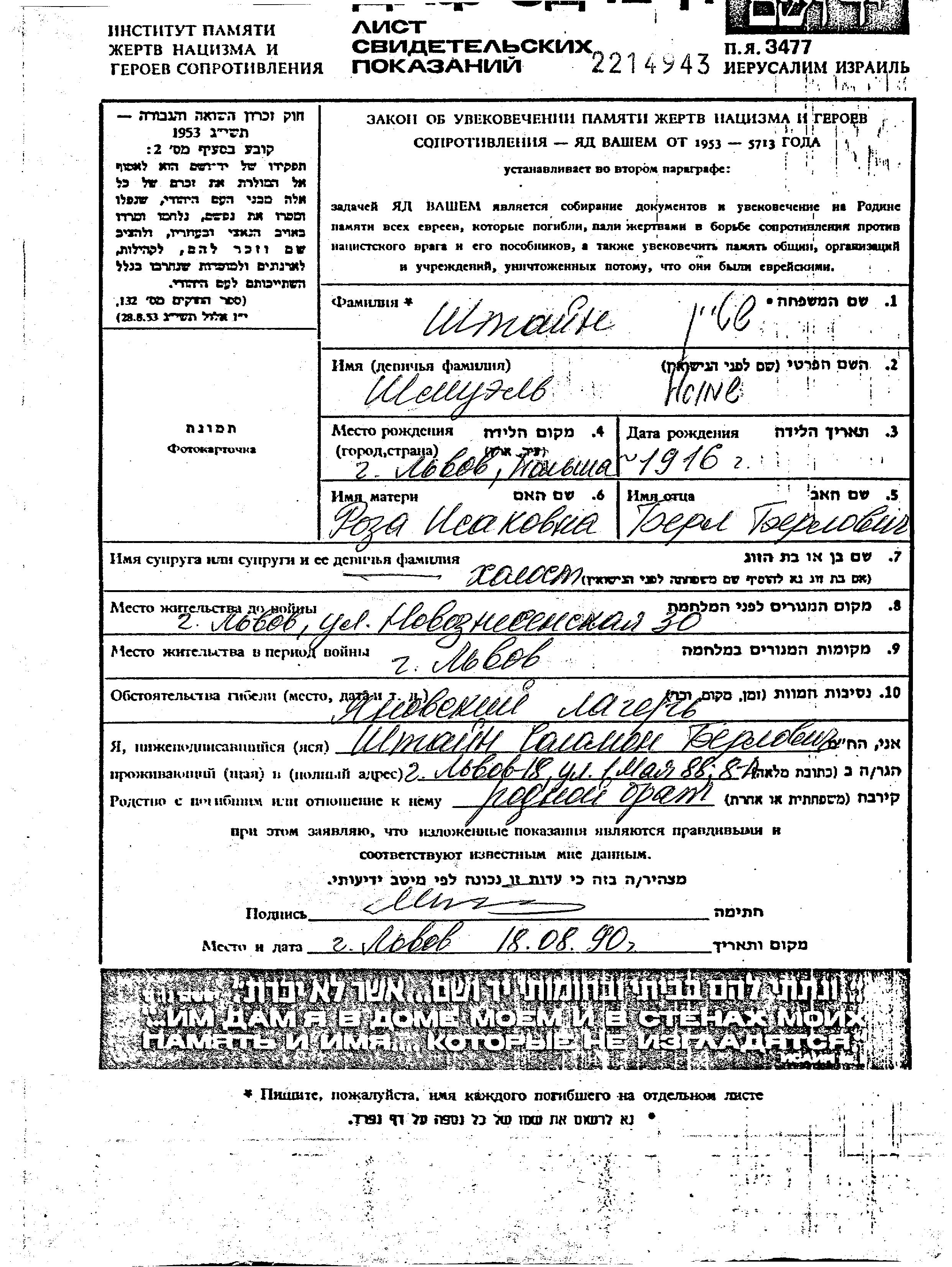 Shmuel wurde in der Schoah ermordet. Todesort: Janow, Polen.