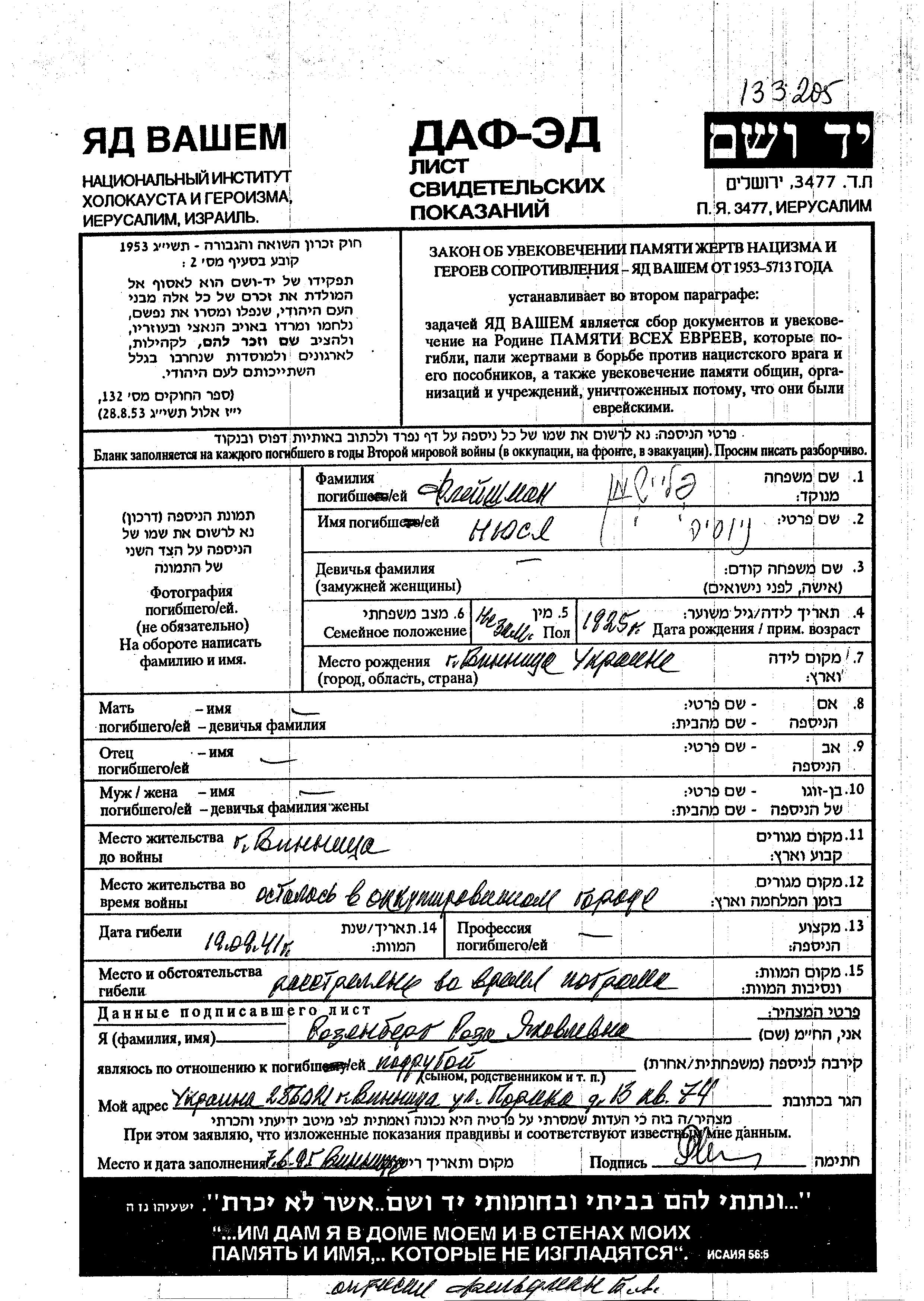 Niusia wurde in der Schoah ermordet. Todesort: unbekannt im Jahr 19/09/1941.