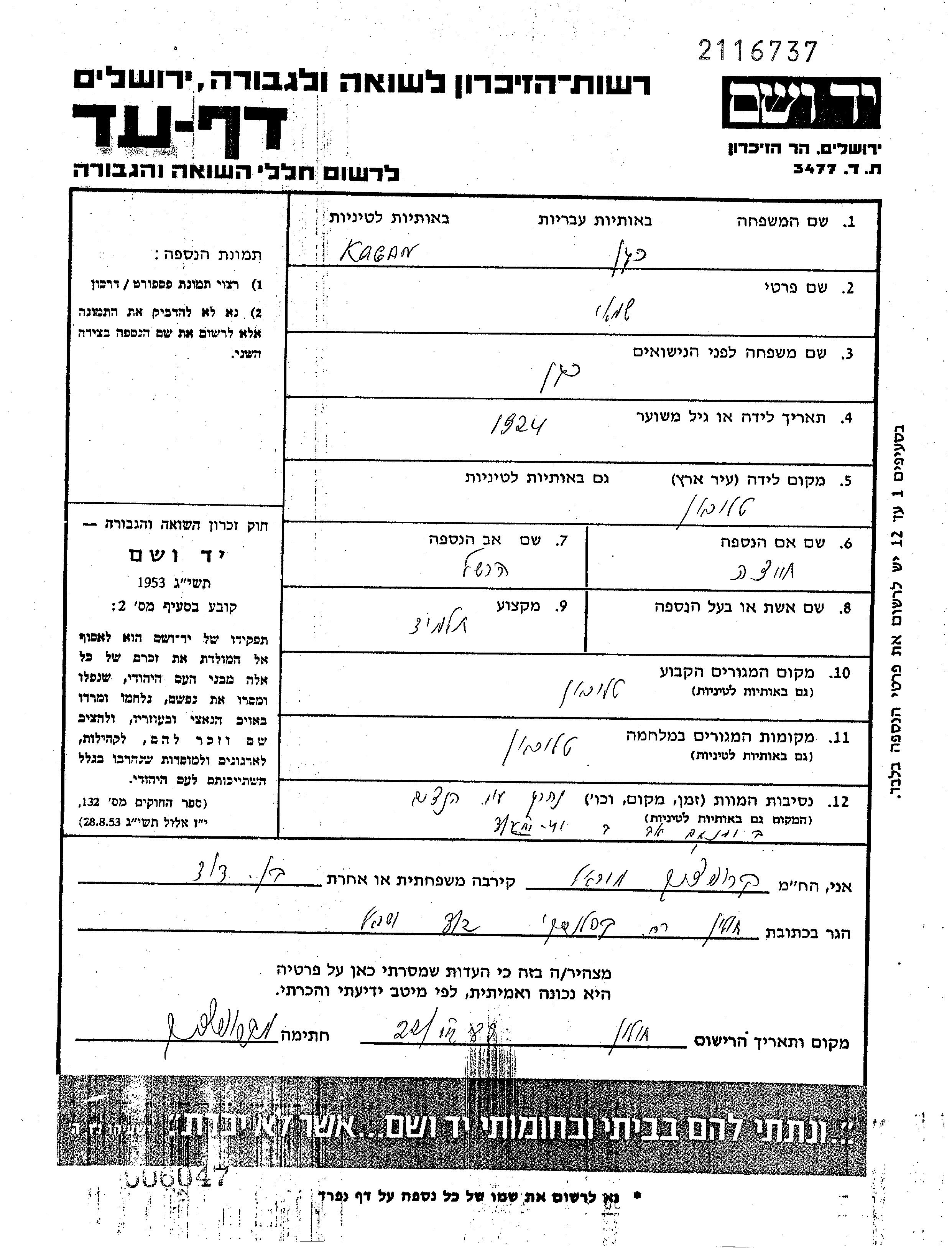 Shamai Kagan wurde in Telechany, Polen geboren. Er war der Sohn von Hershel und Chajca, geb. Czyz. Er war Schüler/-in und Kind. Vor dem Zweiten Weltkrieg lebte er in Telechany, Polen. Während des Krieges war er in Telechany, Polen.