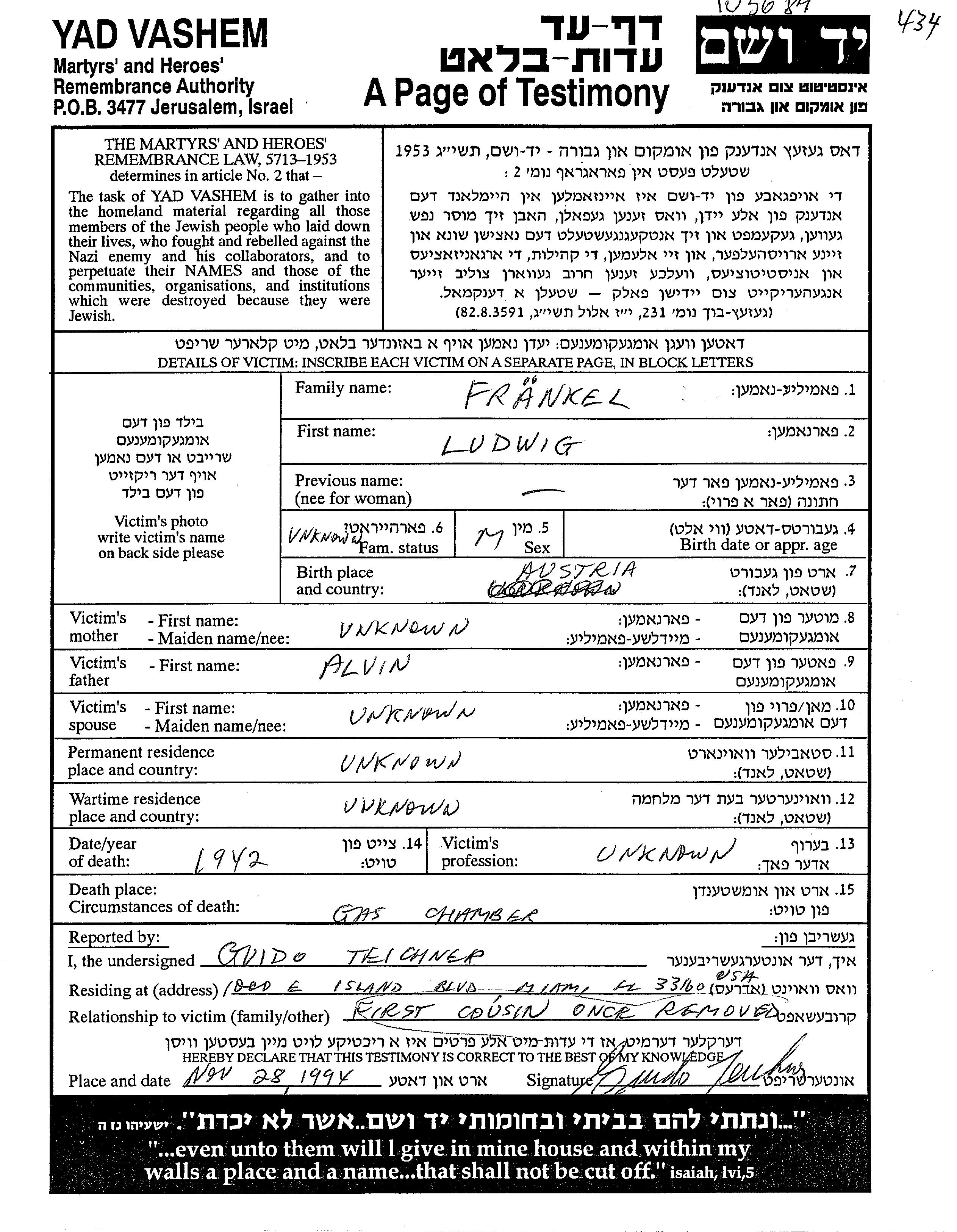 Ludwig wurde in der Schoah ermordet. Todesort: unbekannt im Jahr 1942.