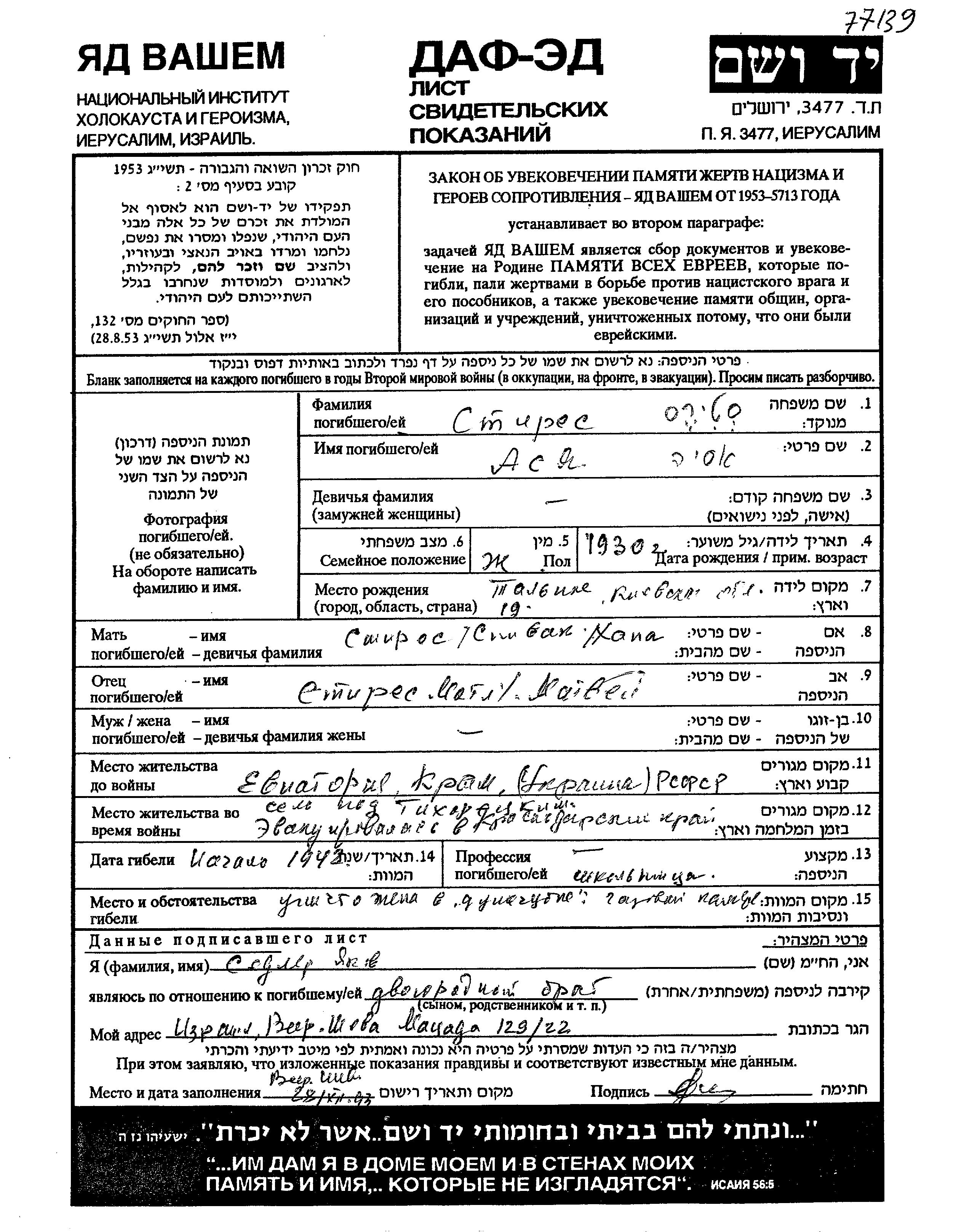 Asia wurde in der Schoah ermordet. Todesort: Krasnodar, Russland (UdSSR) im Jahr 1942.