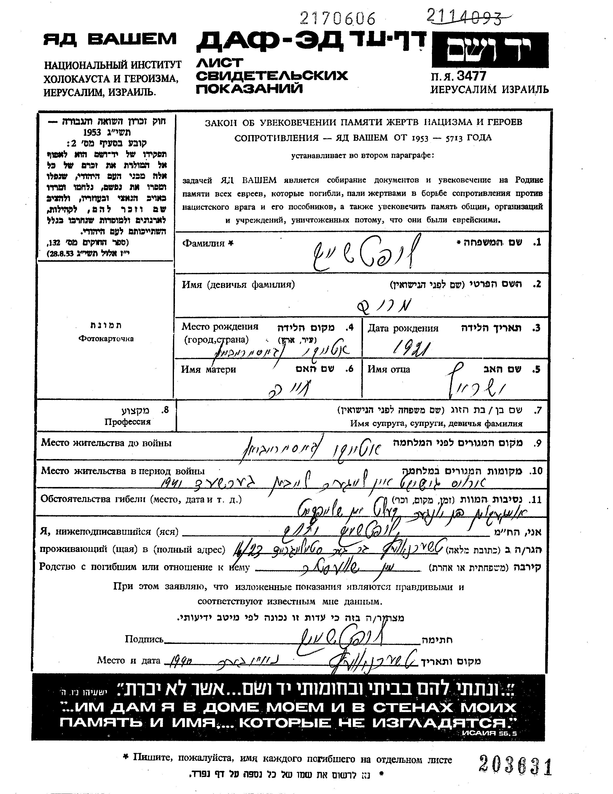 Miriam wurde in der Schoah ermordet. Todesort: Vinnitsa, Ukraine (UdSSR) im Jahr 1941.