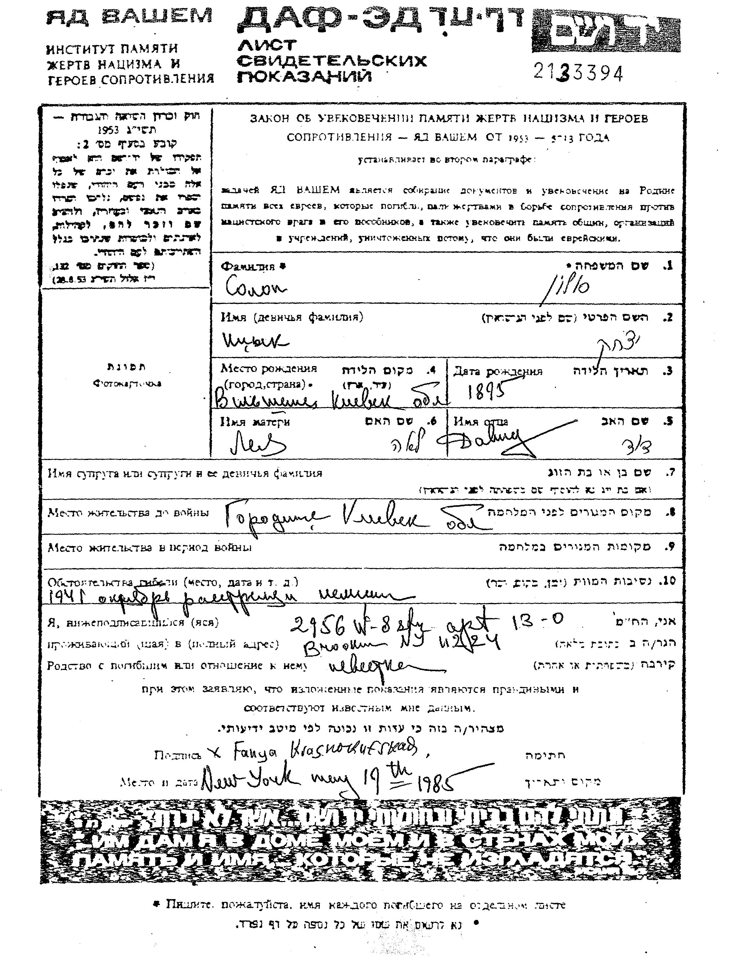Solon Itzyk Gorodishche, Ukraine (UdSSR) Gedenkblatt