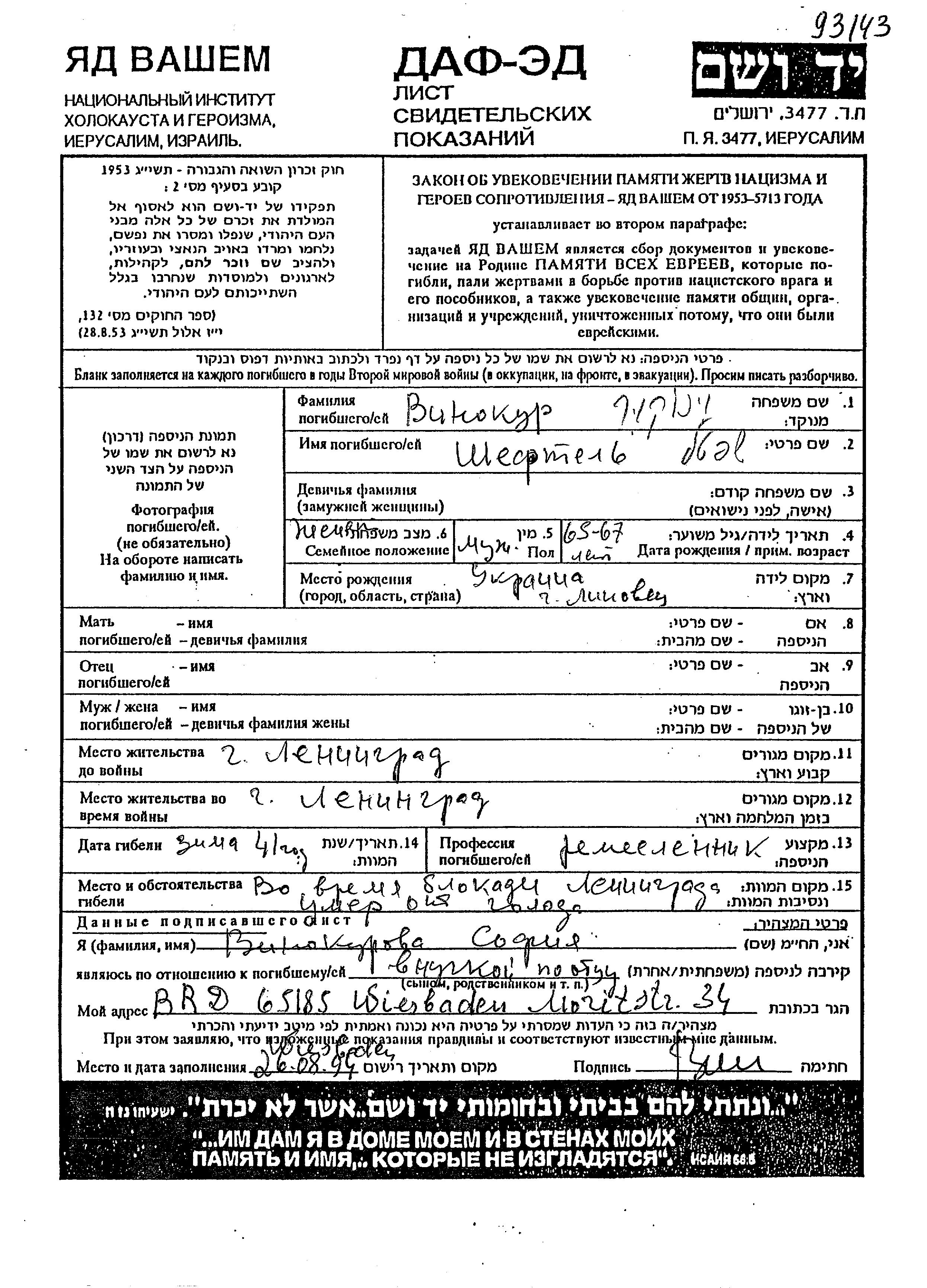 Shabtai wurde in der Zeit zwischen 1933-1945 in indirekter Beziehung mit der Shoah umgekommen. Todesort: Leningrad, Russland (UdSSR) im Jahr 1941.