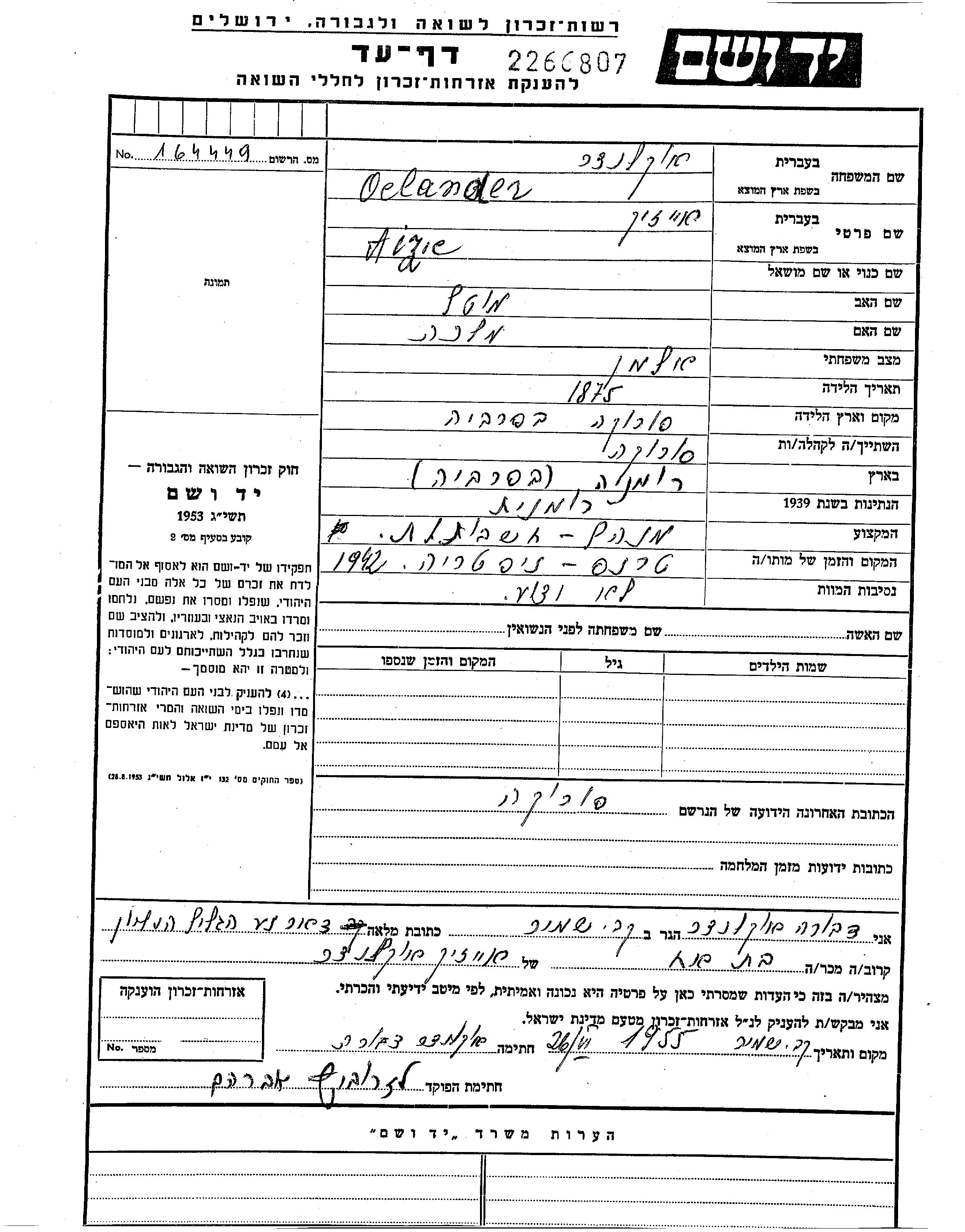 Aizic Oclander wurde im Jahr 1875 in Soroca, Rumänien geboren. Er war der Sohn von Motl und Malka. Er war Verwitwet. Vor dem Zweiten Weltkrieg lebte er in Soroca, Rumänien. Während des Krieges war er in Soroca, Rumänien.