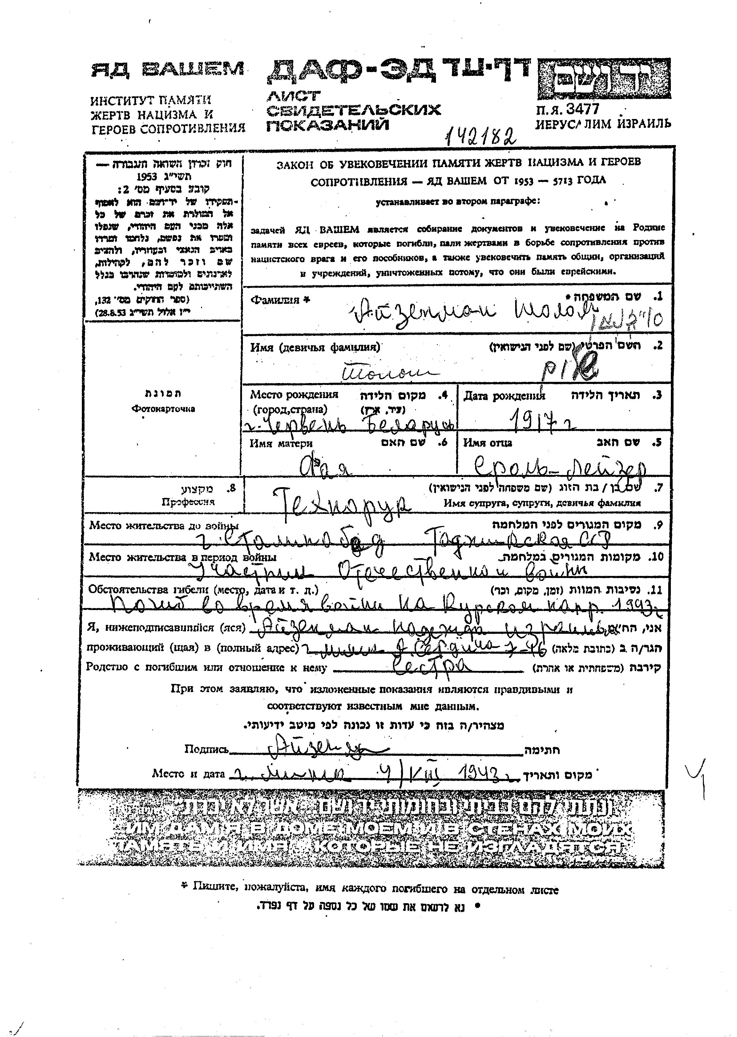 Sholom wurde in der Schoah ermordet. Todesort: Kursk, Russland (UdSSR) im Jahr 1943.