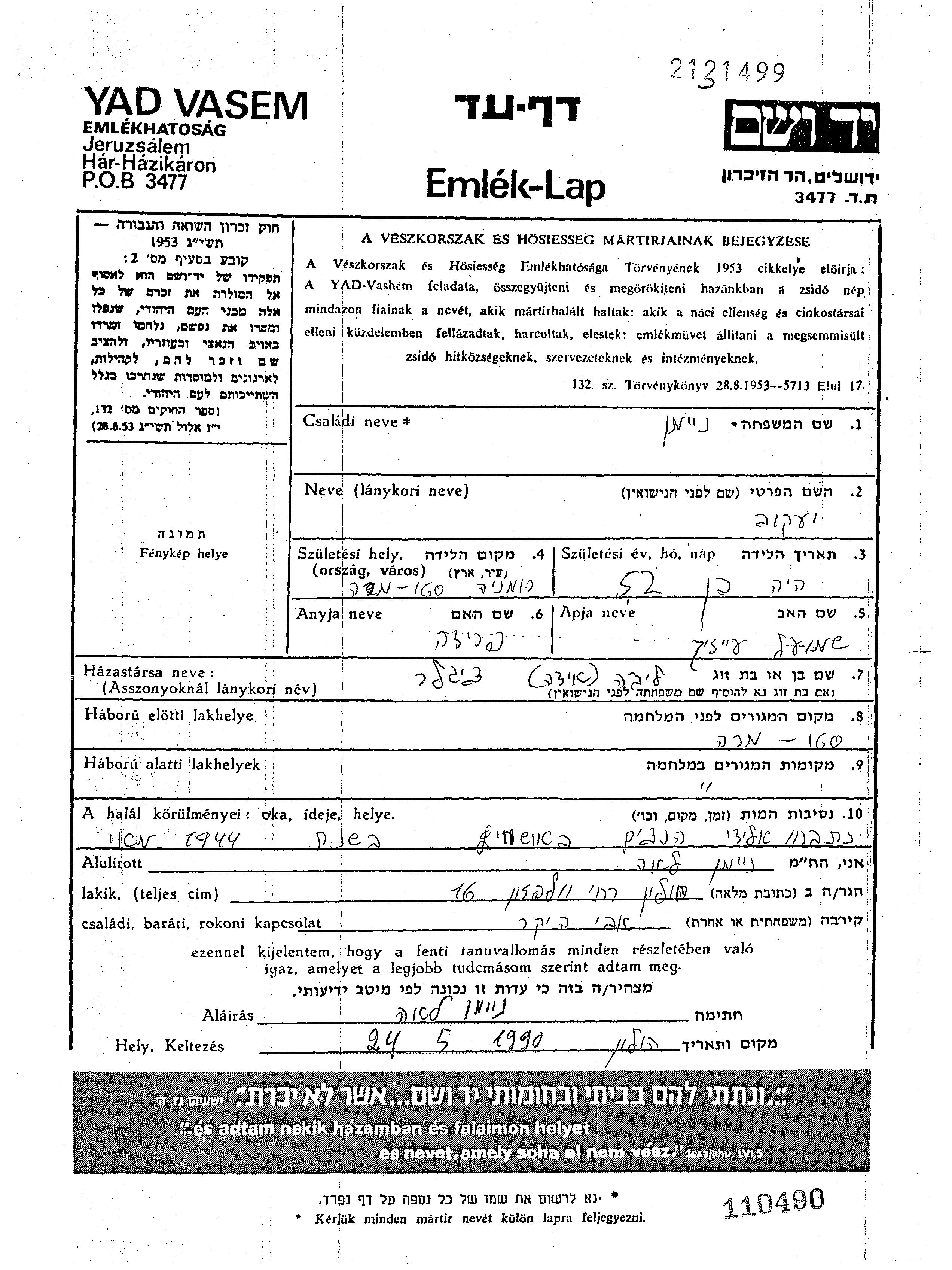 Yaakov wurde in der Schoah ermordet. Todesort: Auschwitz, Polen im Jahr 1944.