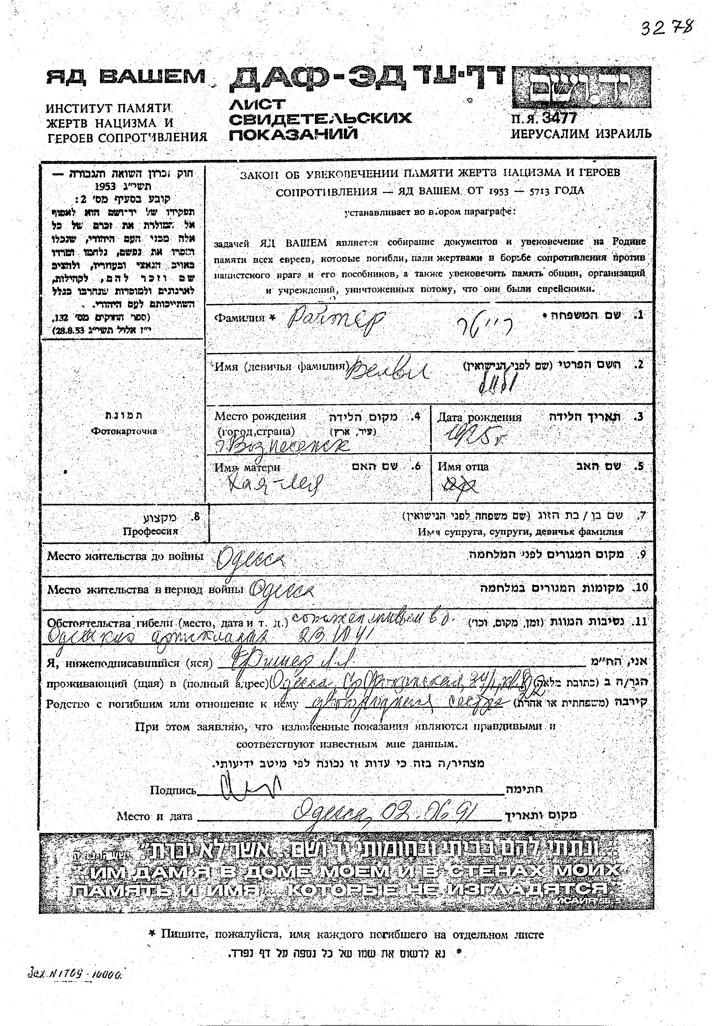 Velvl wurde in der Schoah ermordet. Todesort: Odessa, Ukraine (UdSSR) im Jahr 23/10/1941.