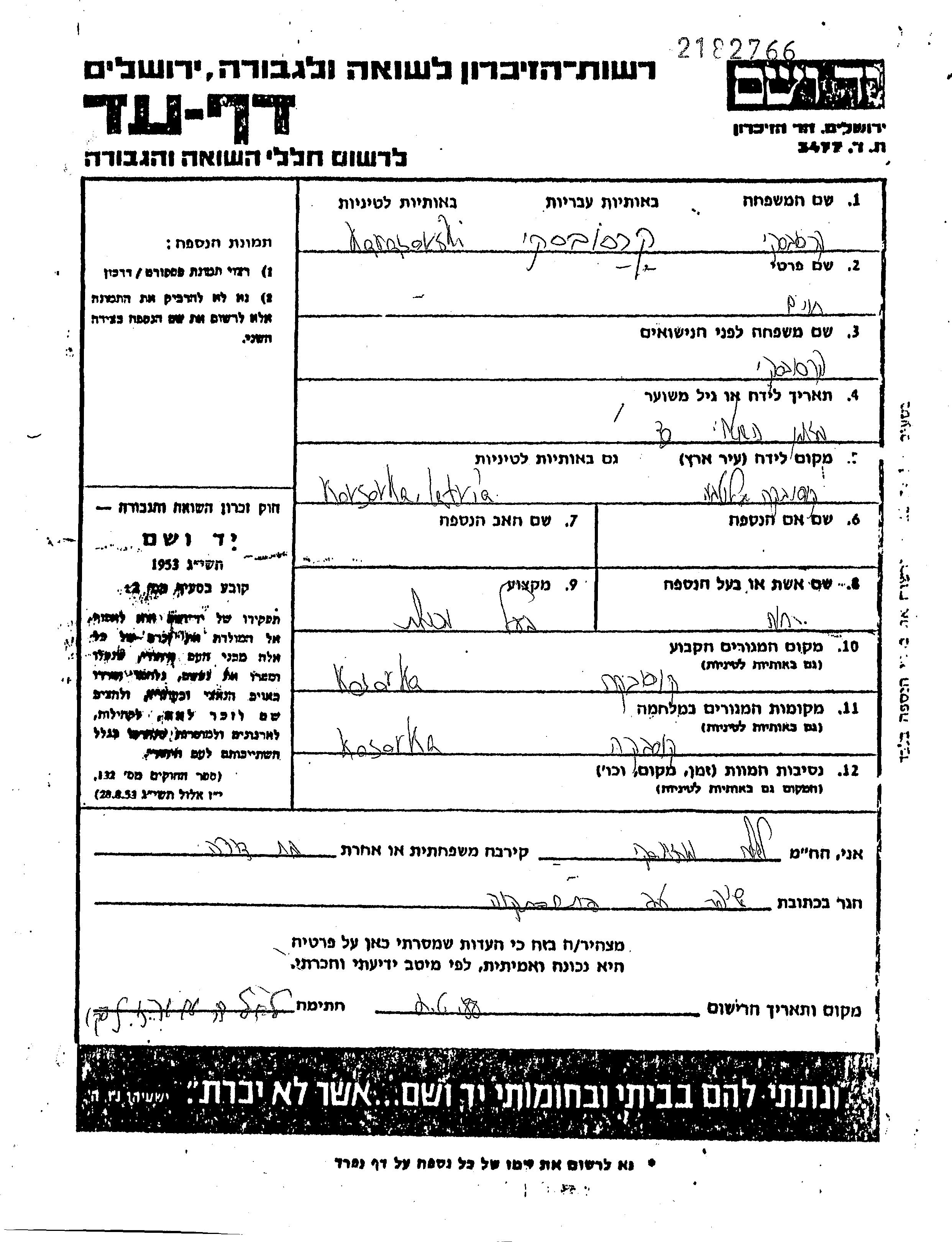 Khaim Krasovski wurde in Korsovke, Lettland geboren. Er war Besitzer/-in eines lebensmittelgeschäfts und mit Khava Verheiratet. Vor dem Zweiten Weltkrieg lebte er in Korsovke, Lettland. Während des Krieges war er in Korsovke, Lettland.