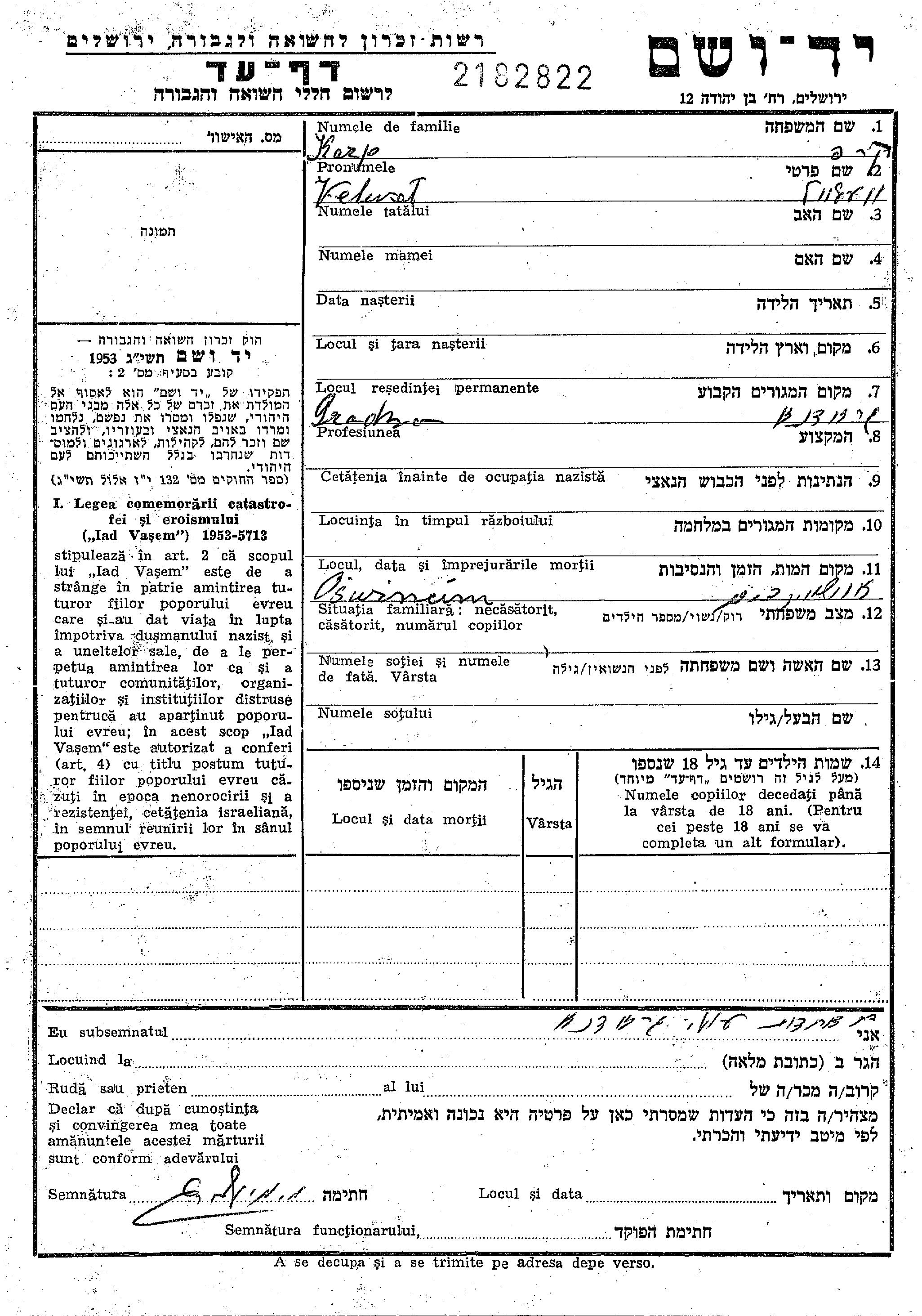 Velwel wurde in der Schoah ermordet. Todesort: Auschwitz, Polen.