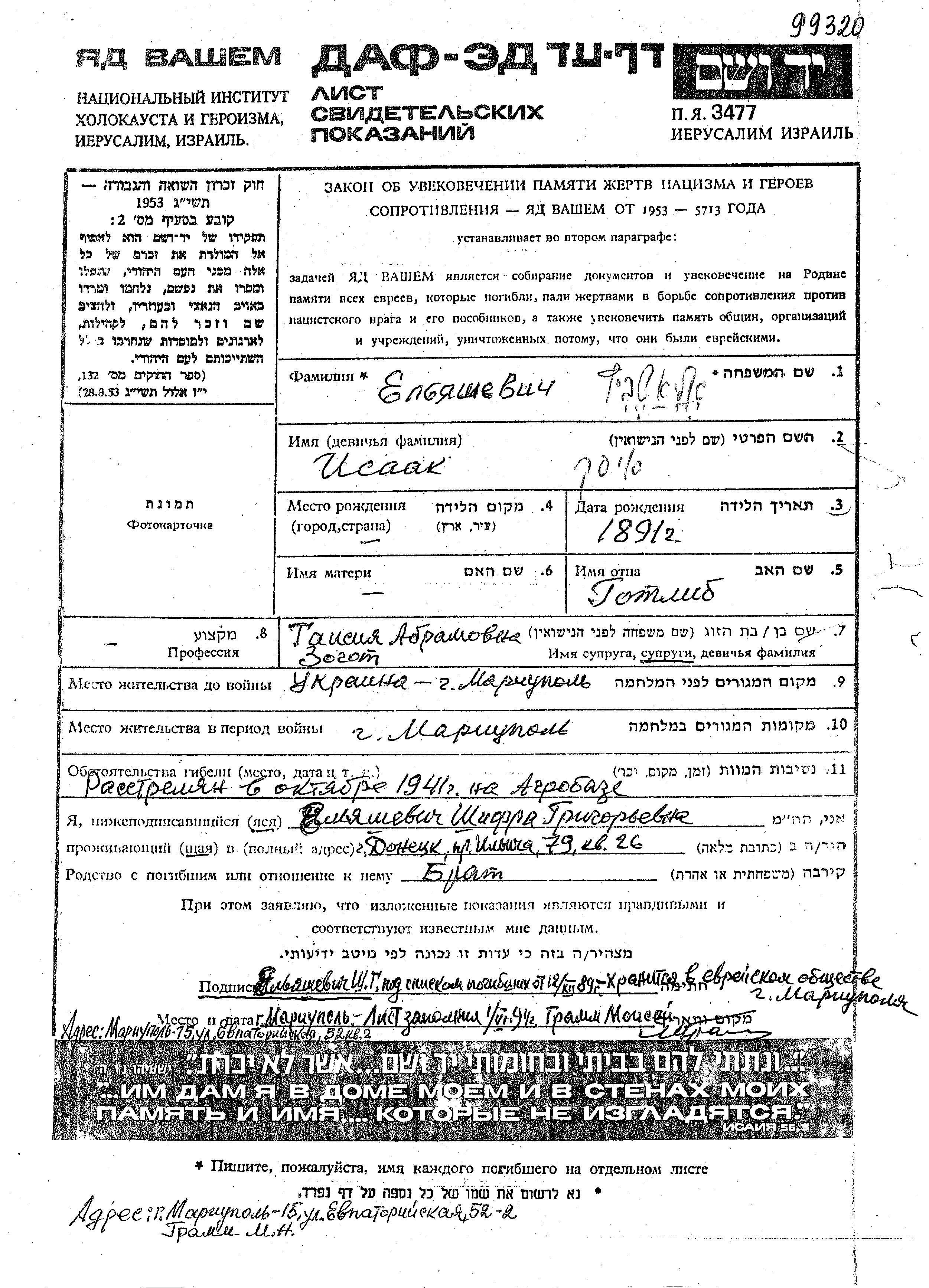 Aufenthaltsort während des Krieges/Schoah