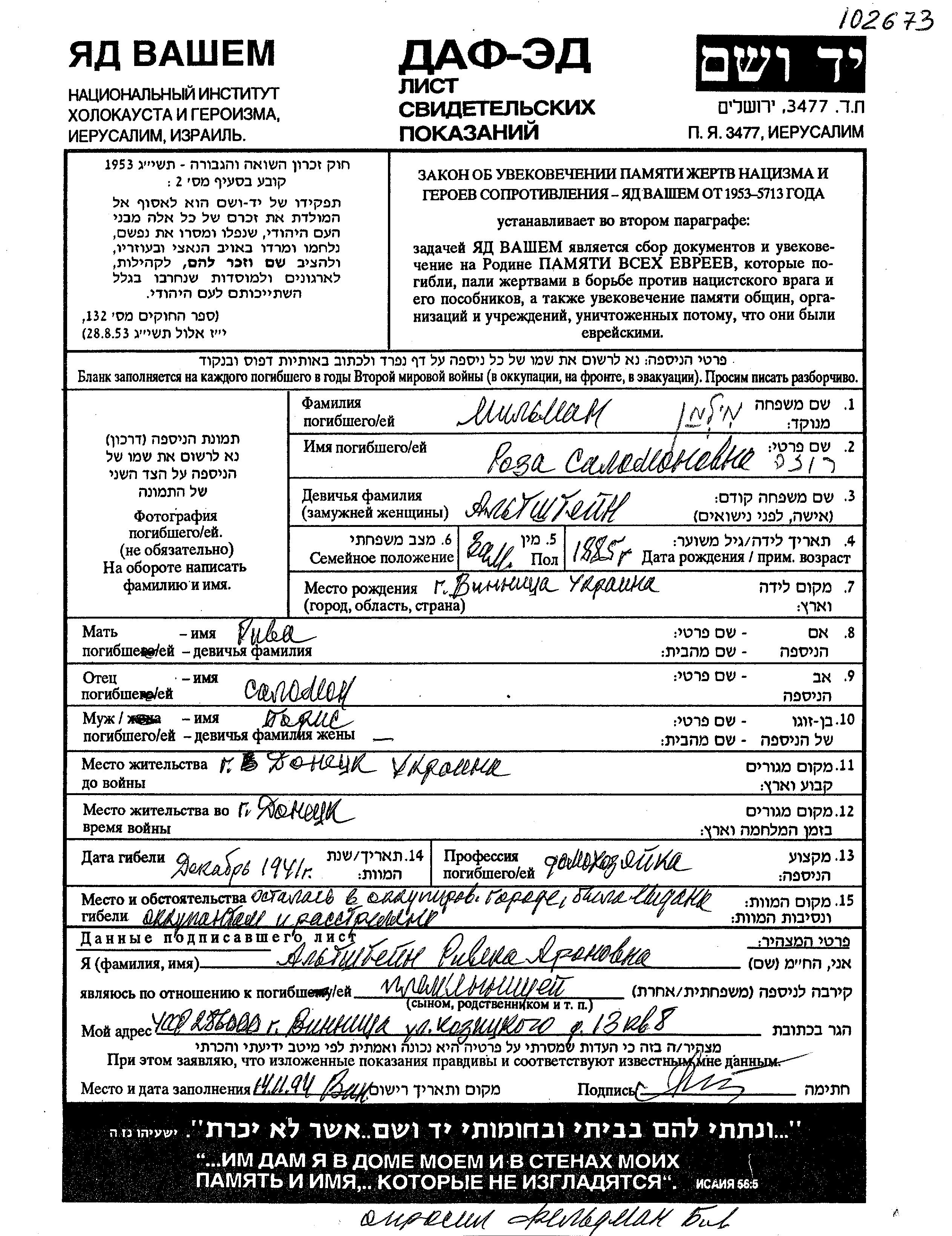 Roza wurde in der Schoah ermordet. Todesort: Donetsk, Ukraine (UdSSR) im Jahr 1941.