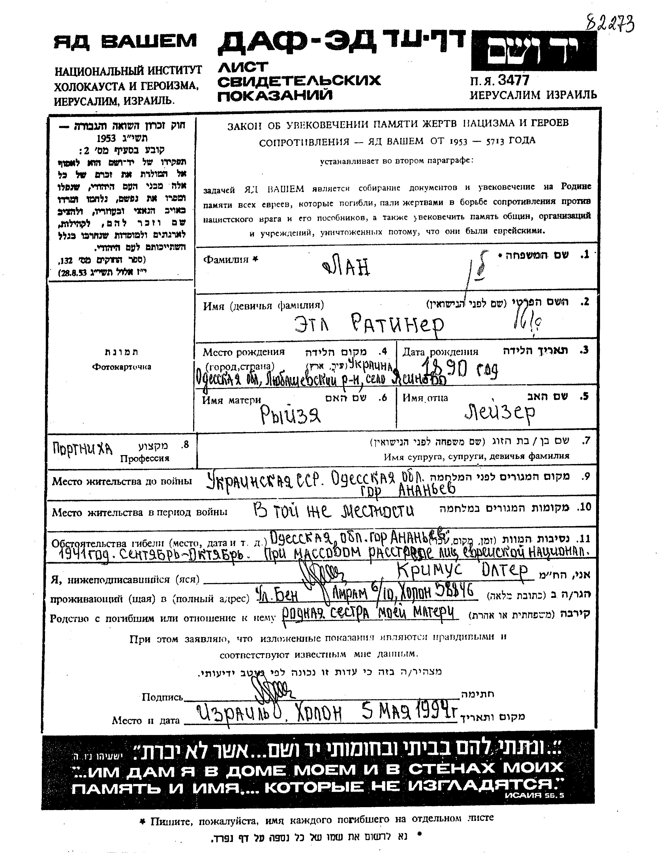 Juden wurden in der Schoah auf verschiedenste Weisen ermordet, unter anderem: Vergasen, Erschiessen, lebendig verbrannt werden, lebendig begraben werden, Tod durch Erschöpfung durch Zwangsarbeit, Epidemien, mangels jeder hygienischer Bedingung oder dem Fehlen medizinischer Versorgung. Manche Juden nahmen sich das Leben, um der Festnahme und weiterer Verfolgung zu entgehen oder ihr hoffnungsloses, nicht nachlassendes Leiden zu beenden.