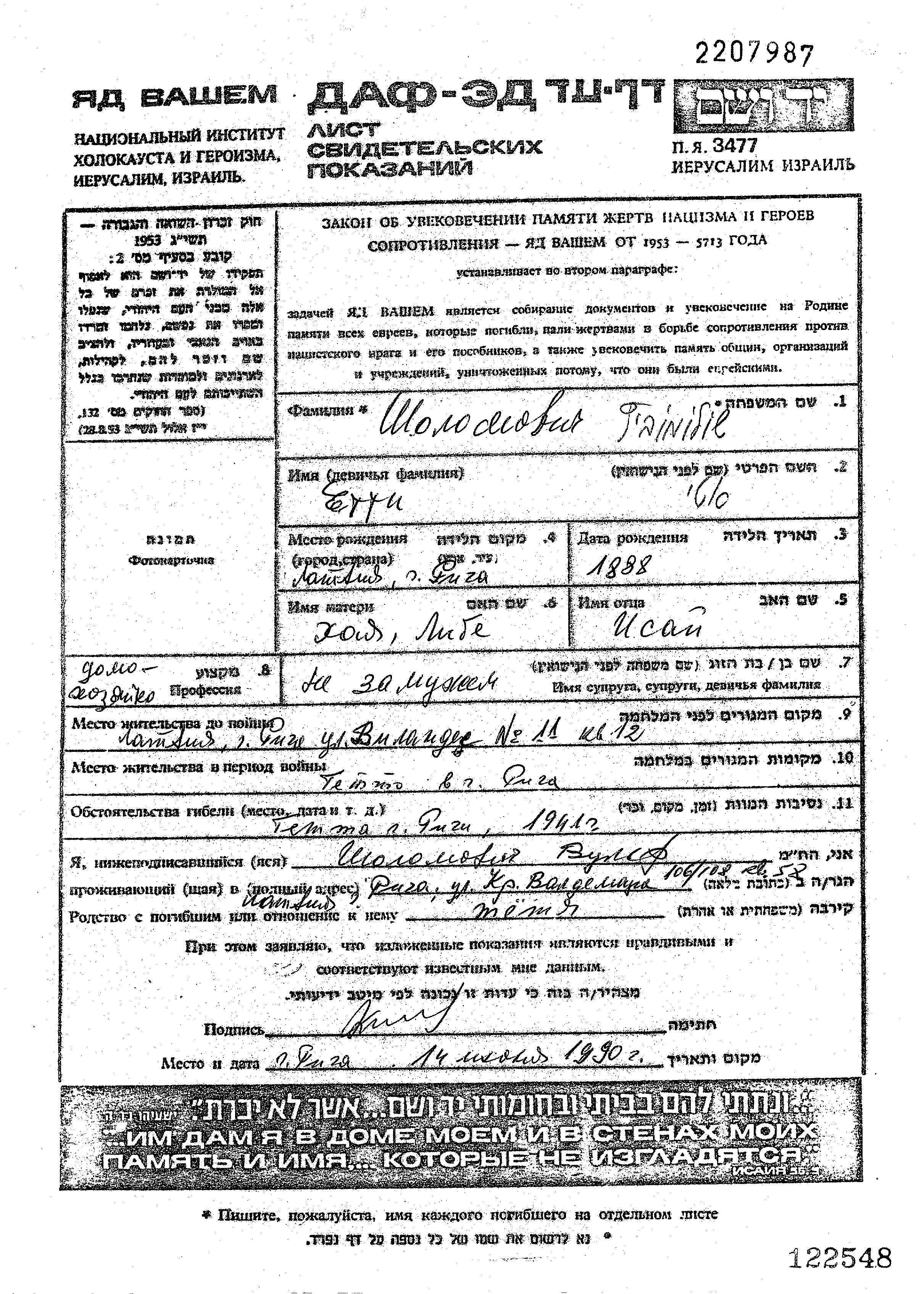 Sholomovich Etti Riga, Lettland Gedenkblatt