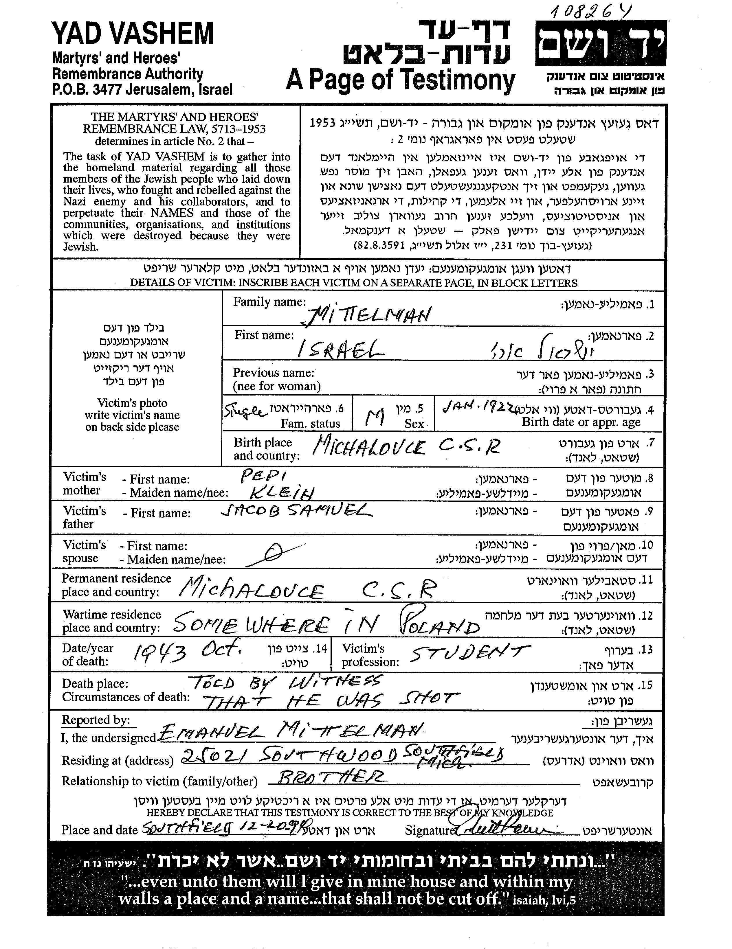 Juden wurden in der Schoah auf verschiedenste Weisen ermordet, unter anderem: Vergasen, Erschiessen, lebendig verbrannt werden, lebendig begraben werden, Tod durch Erschöpfung durch Zwangsarbeit, Epidemien, mangels jeder hygienischer Bedingung oder dem Fehlen medizinischer Versorgung. Manche Juden nahmen sich das Leben, um der Festnahme und weiterer Verfolgung zu entgehen oder ihr hoffnungsloses, nicht nachlassendes Leiden zu beenden.