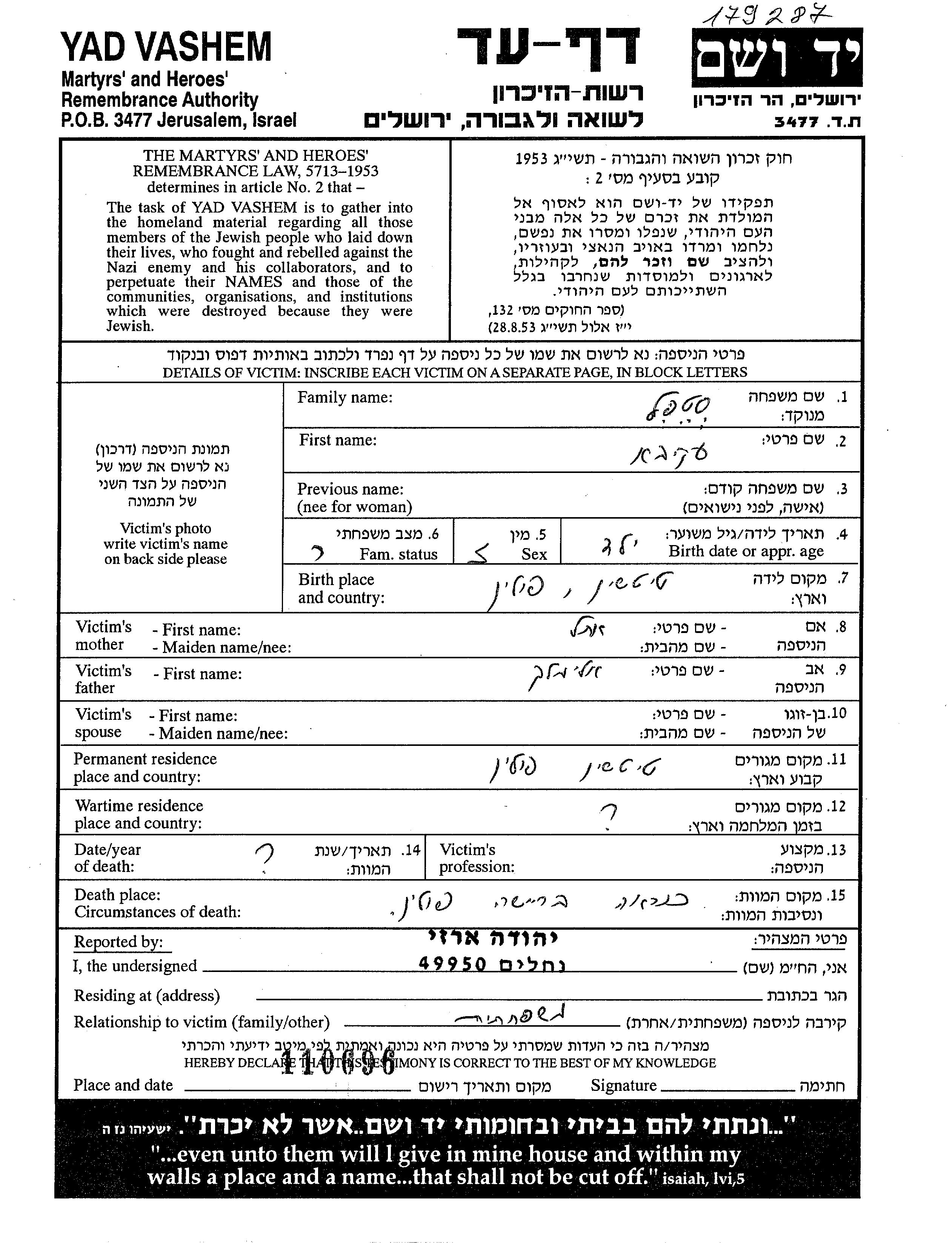Akiva wurde in der Schoah ermordet. Todesort: Rzeszow, Polen im Jahr 1942.
