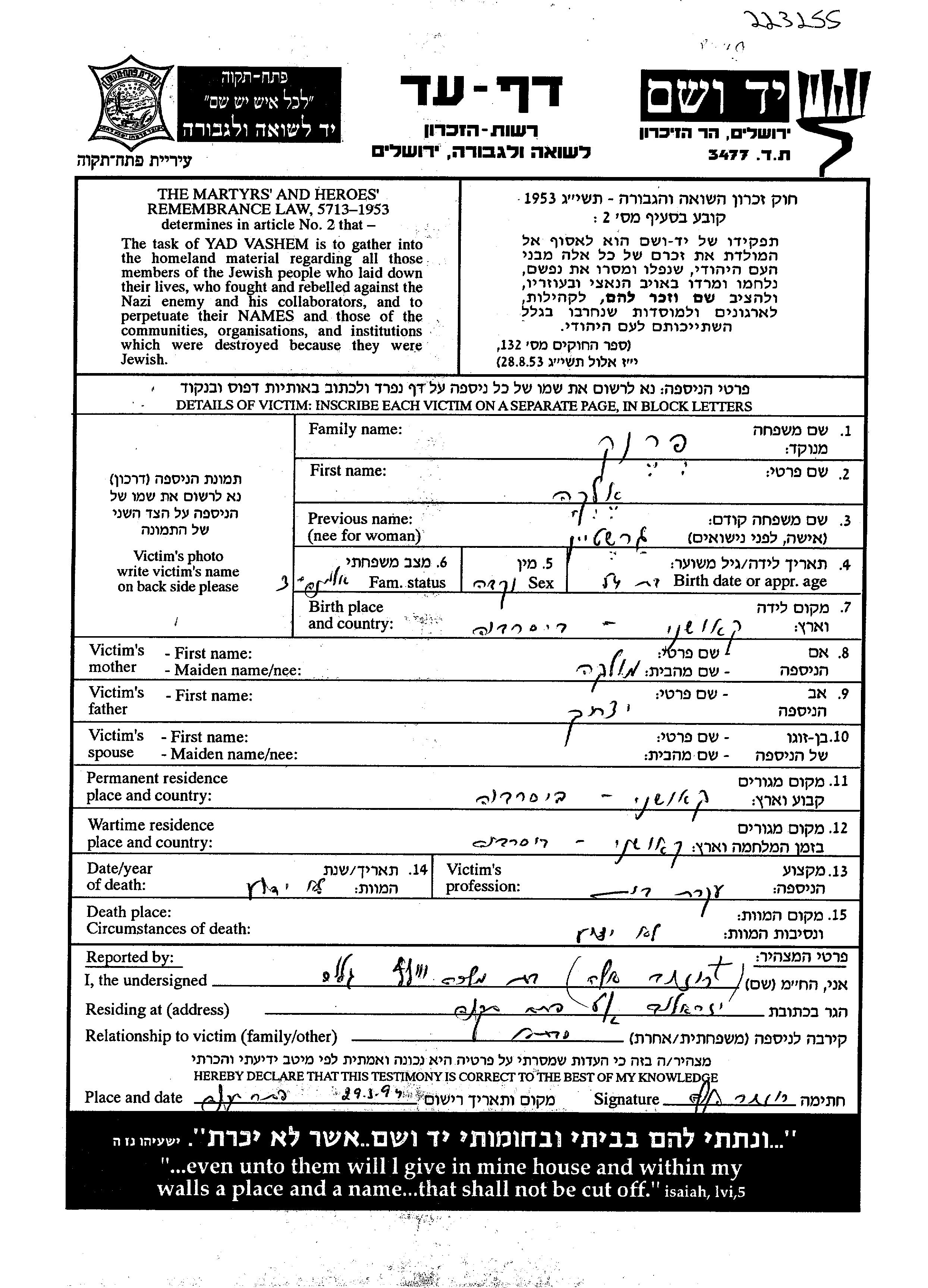 Elka wurde in der Schoah ermordet.