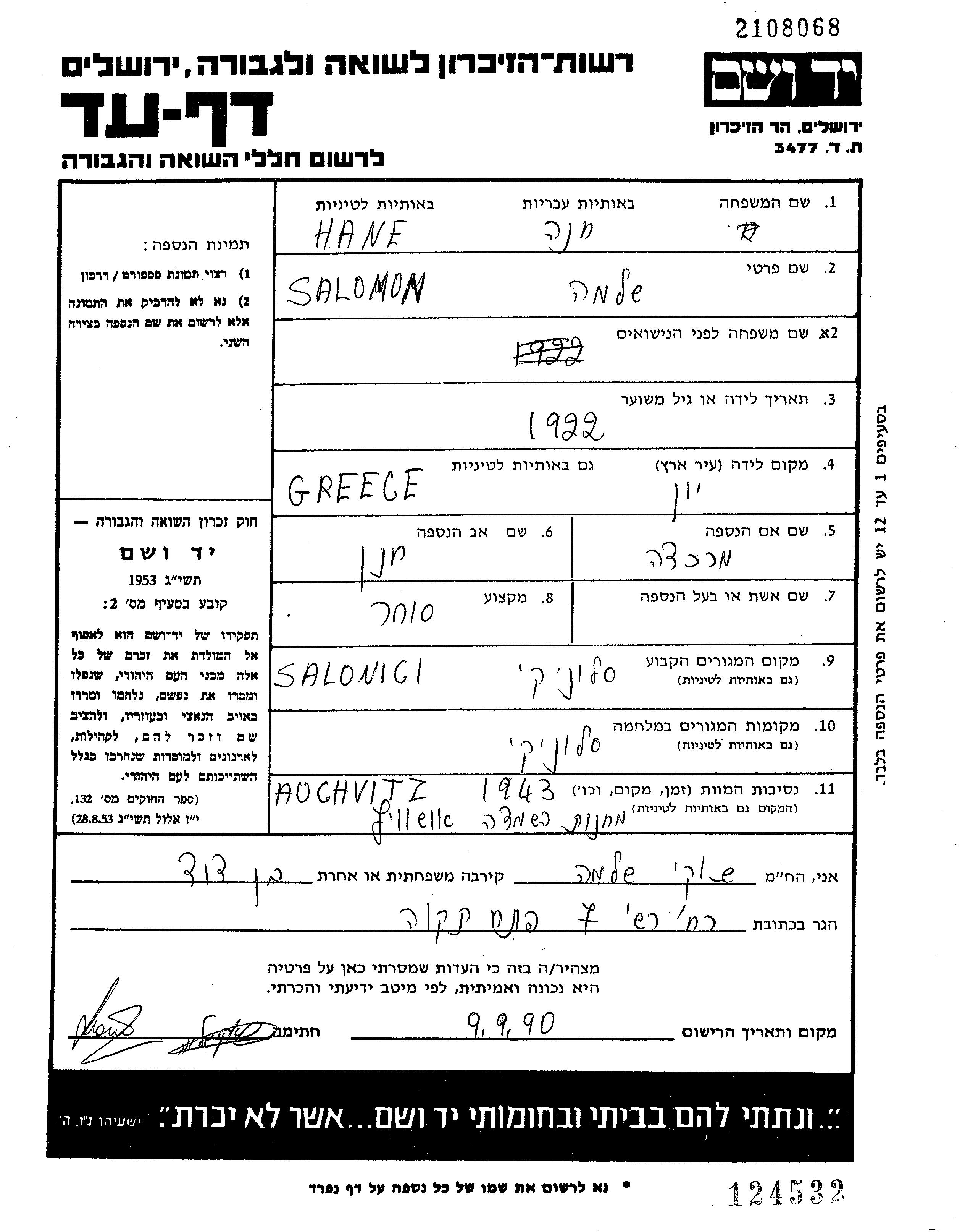 Hane Salomon Saloniki, Griechenland Gedenkblatt