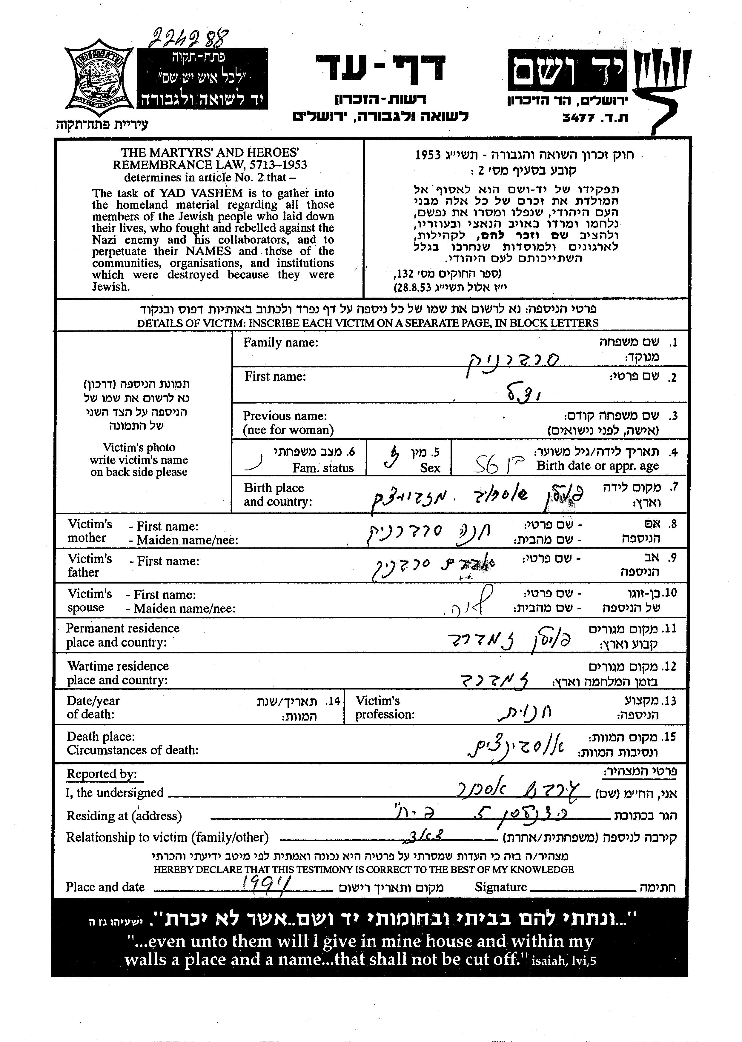 Idel Idl Serebrenik wurde in Ostrów Mazowiecka, Polen geboren. Er war der Sohn von Abram und Khana. Er war Ladenbesitzer/-in und mit Lia Verheiratet. Vor dem Zweiten Weltkrieg lebte er in Zambrow, Polen. Während des Krieges war er in Zambrow, Polen.