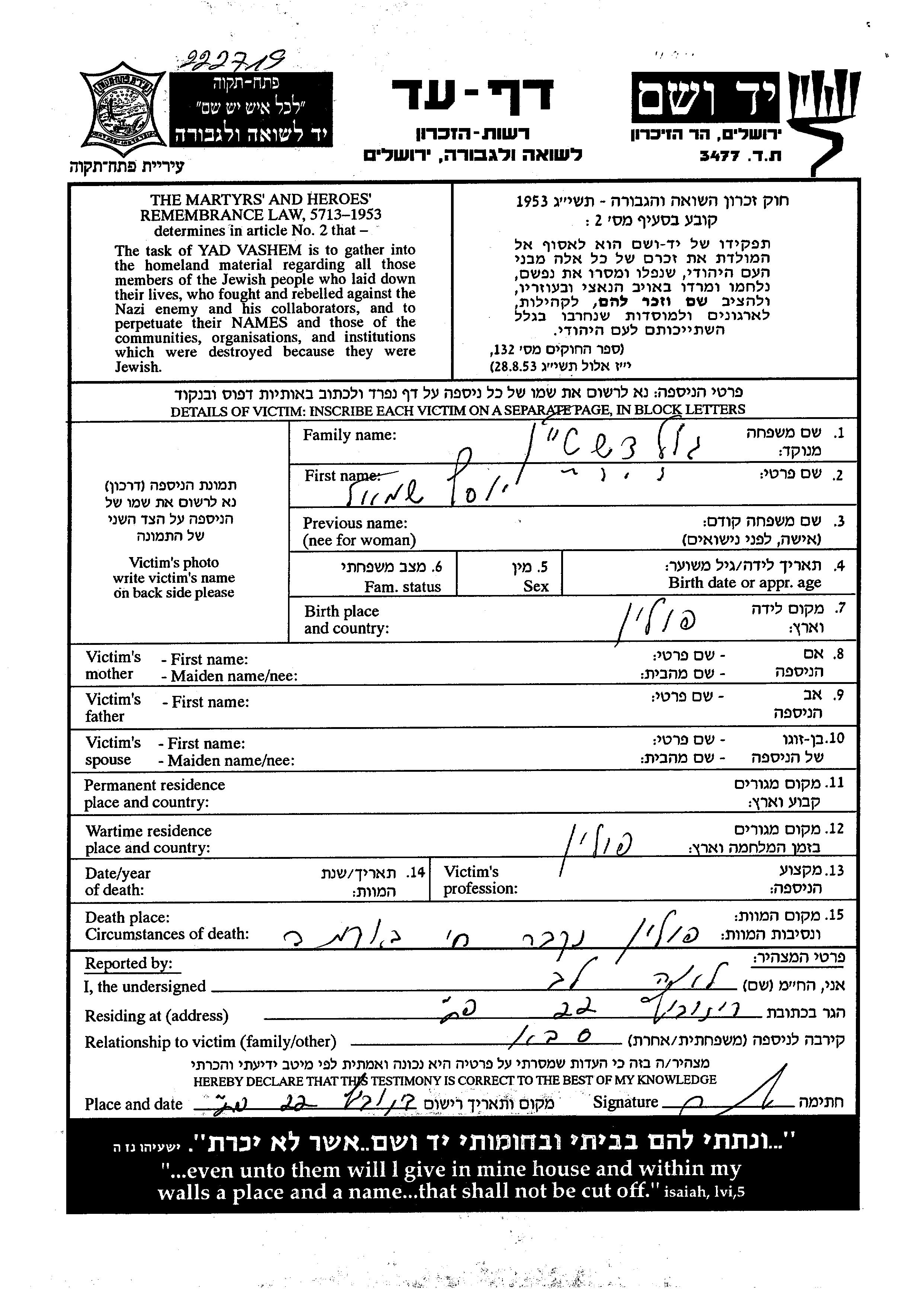 Goldshtein Yosef Shmuel unbekannter Ort, Gedenkblatt