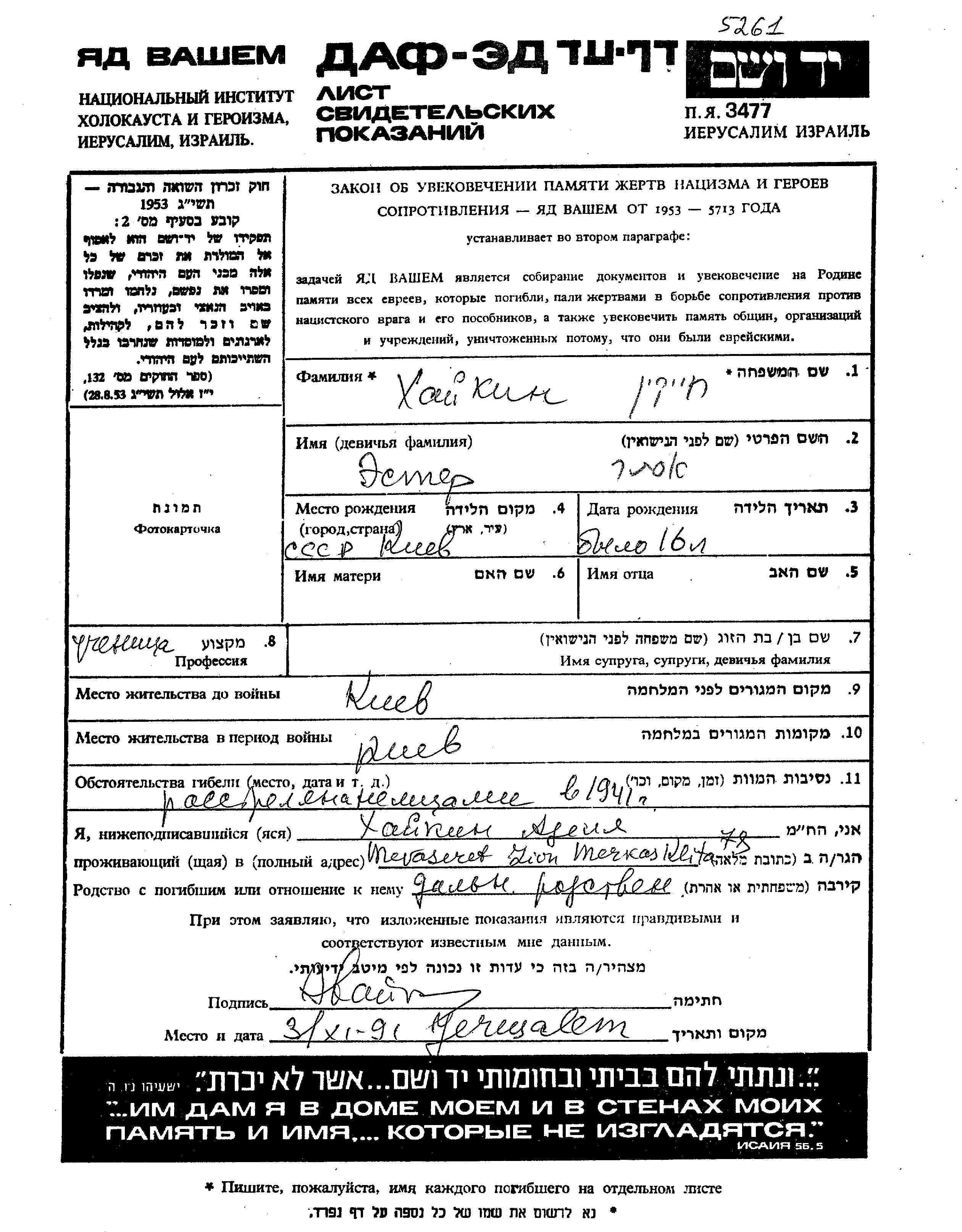 Ester wurde in der Schoah ermordet. Todesort: Kiyev, Ukraine (UdSSR) im Jahr 1941.