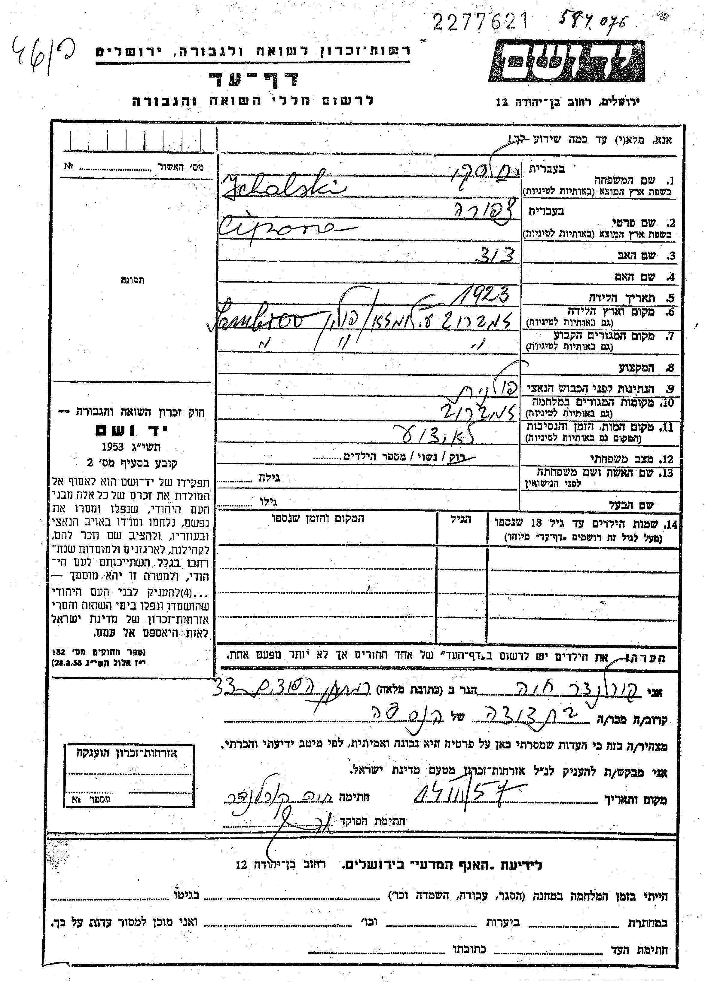 Cipora wurde in der Schoah ermordet.