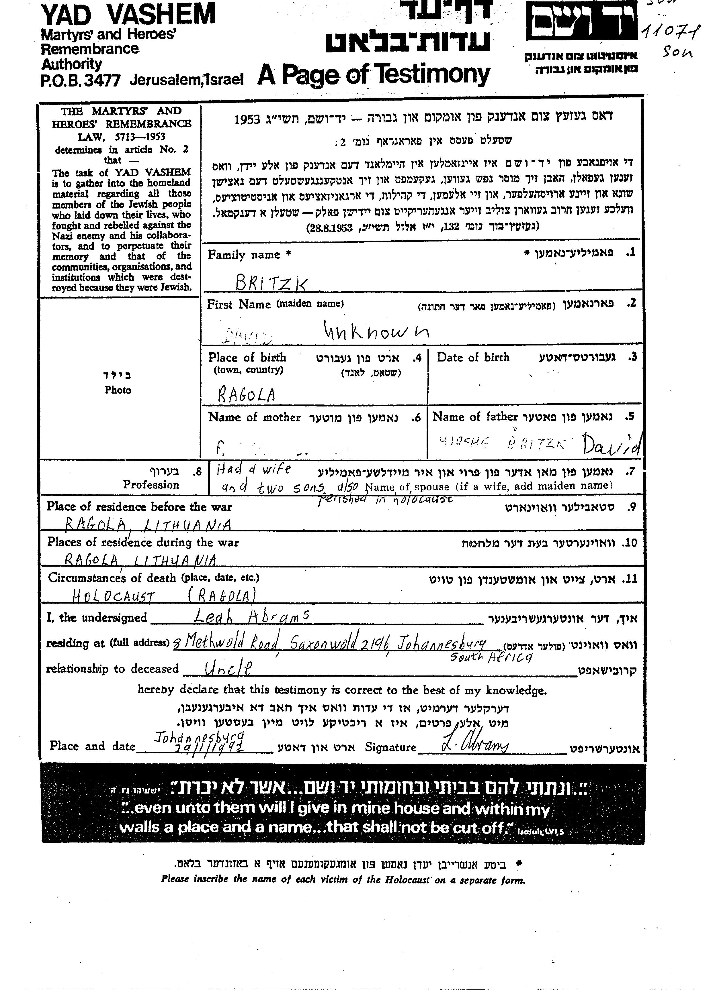 Vorname unbekannt Britzk wurde Er war der Sohn von David.