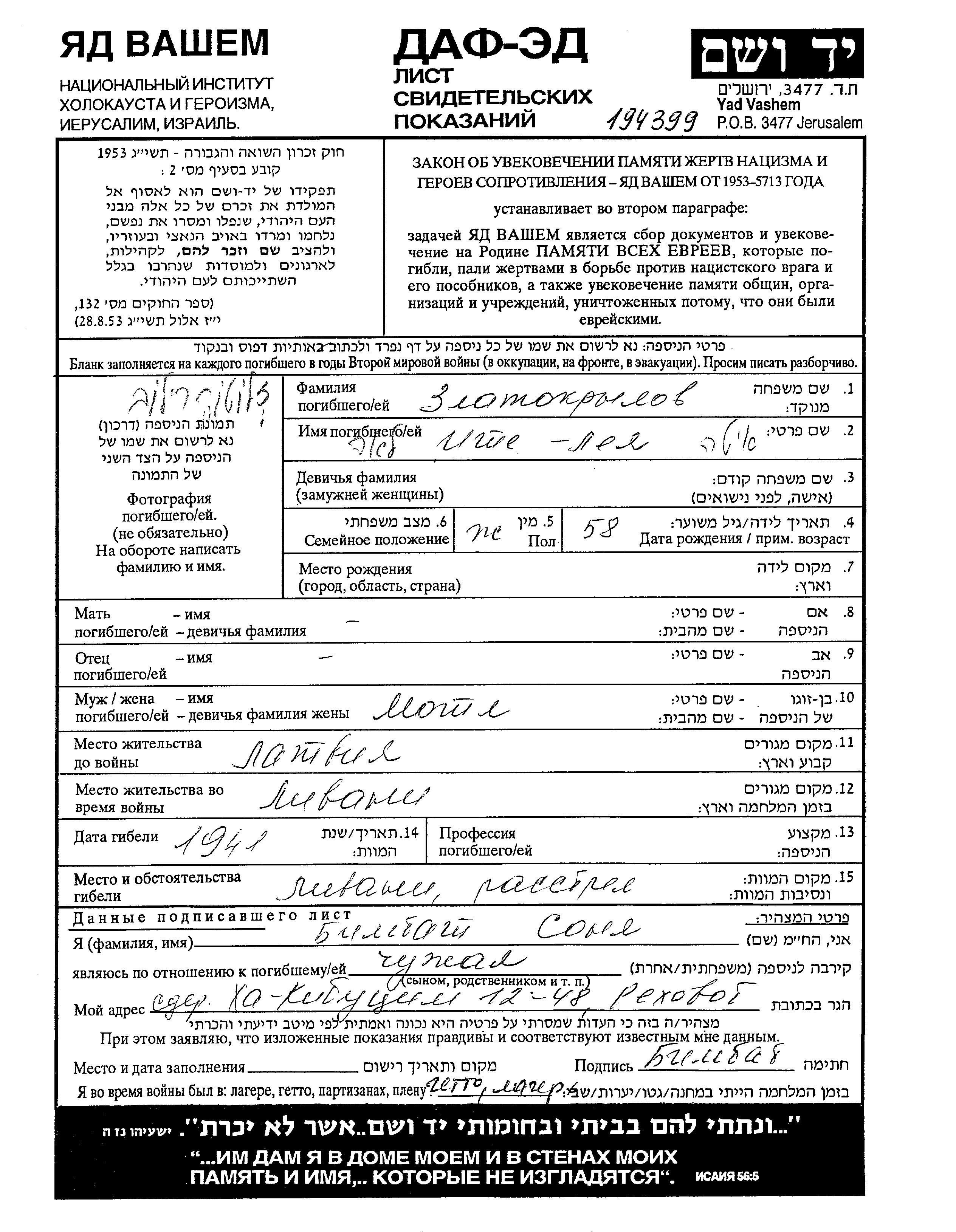 Ite Lea Zlatokrylov wurde im Jahr 1883 geboren. Sie war mit Motl Verheiratet. Vor dem Zweiten Weltkrieg lebte sie in Lettland. Während des Krieges war sie in Livani, Lettland.