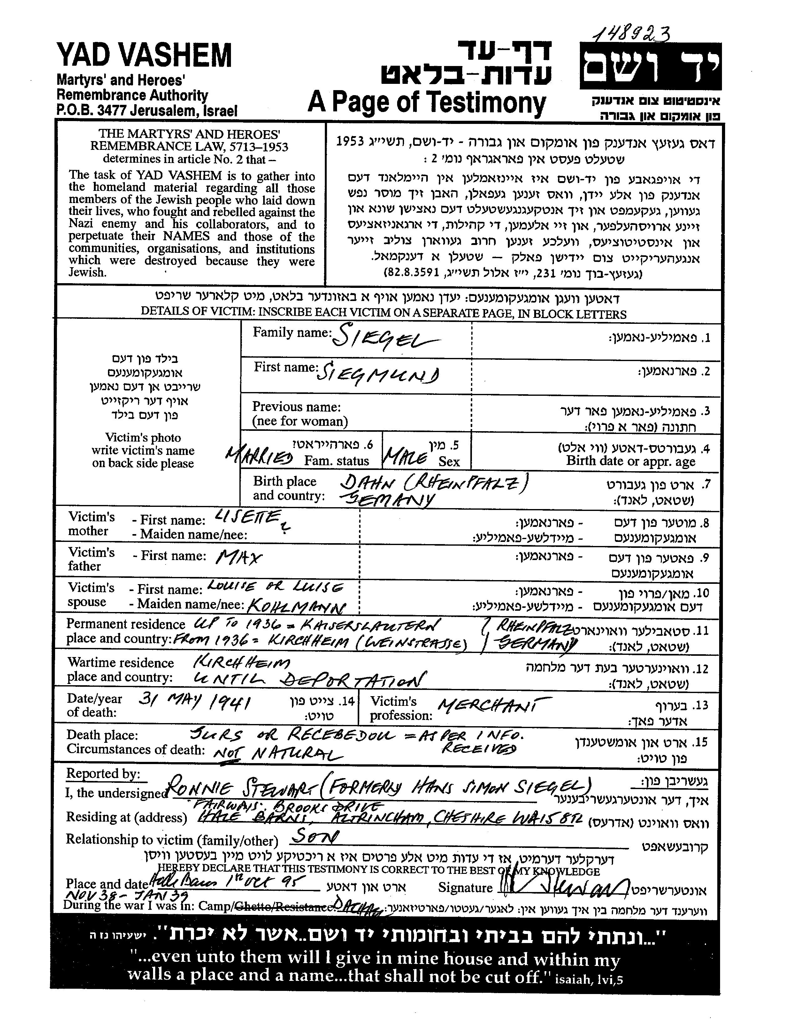 Suche nach einem Todesjahr im Zeitraum der Holocaust: 1933 bis 1945. Bitte wählen Sie 'Exakt' im Auswahlmenü, um nur nach einem einzelnen Jahr zu suchen, alternativ können Sie die flexibleren Optionen '+/- 2 Jahre' oder '+/- 5 Jahre' wählen.