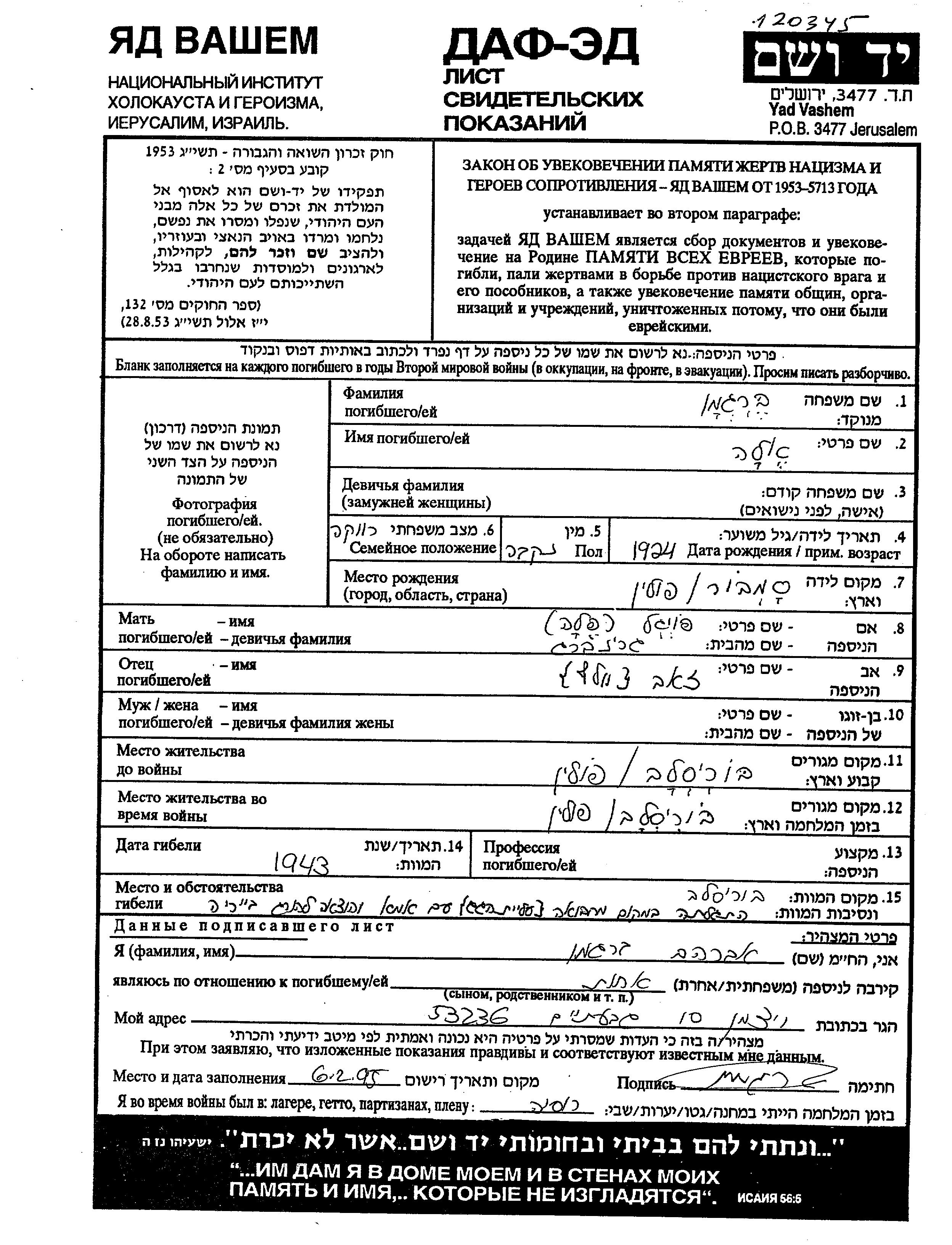 Ela wurde in der Schoah ermordet. Todesort: Boryslaw, Polen im Jahr 1943.