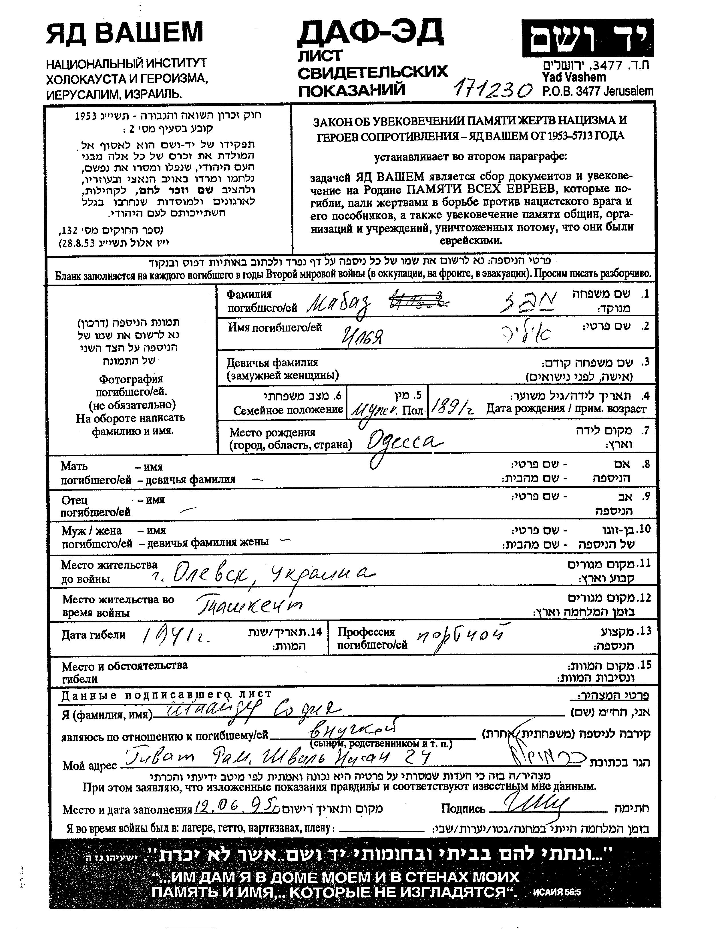 Suche nach einem Todesjahr im Zeitraum der Holocaust: 1933 bis 1945. Bitte wählen Sie 'Exakt' im Auswahlmenü, um nur nach einem einzelnen Jahr zu suchen, alternativ können Sie die flexibleren Optionen '+/- 2 Jahre' oder '+/- 5 Jahre' wählen.