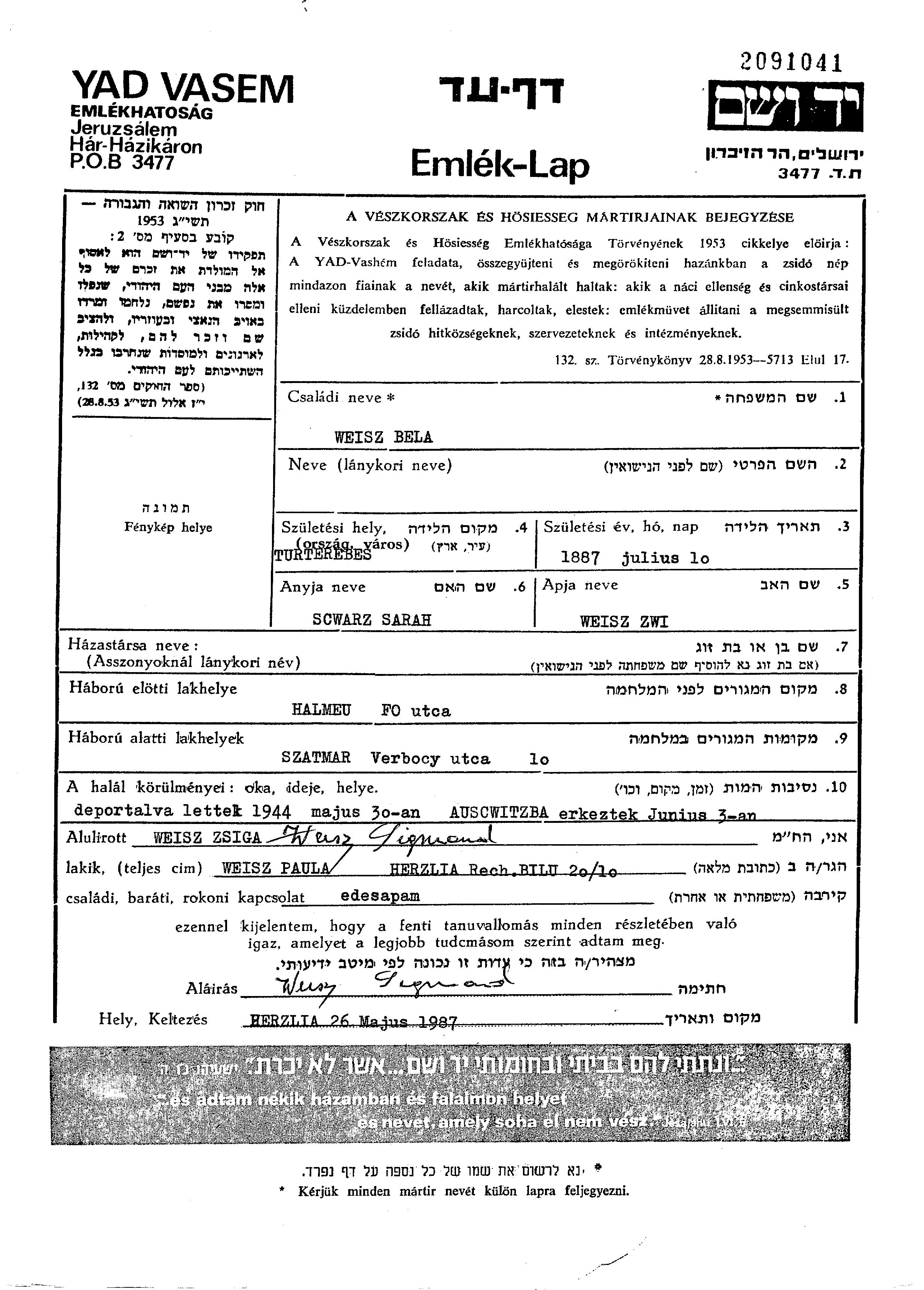 Bela wurde in der Schoah ermordet. Todesort: Auschwitz, Polen im Jahr 03/06/1944.