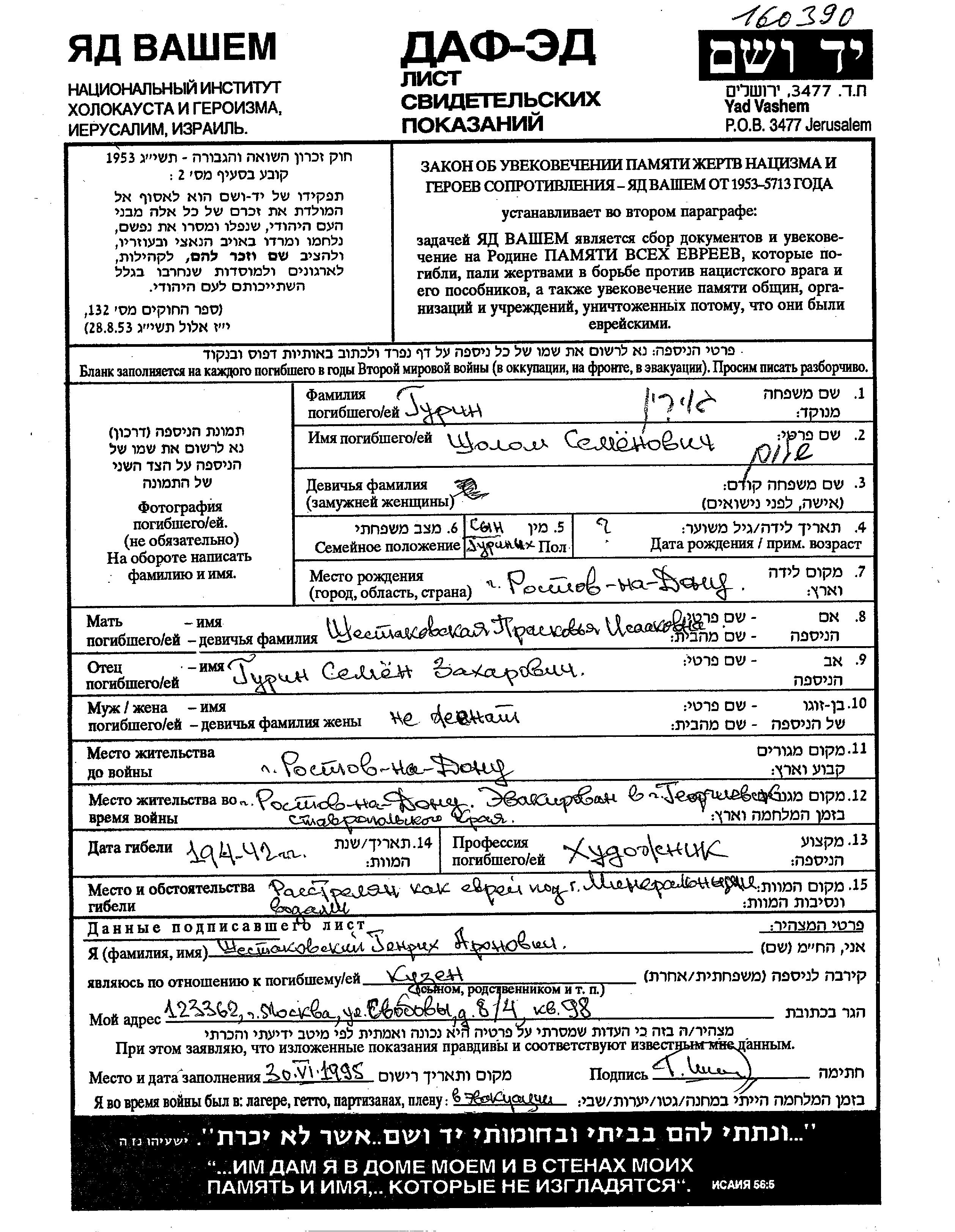 Sholom wurde in der Schoah ermordet. Todesort: Mineralnye Vody, Russland (UdSSR) im Jahr 1942.