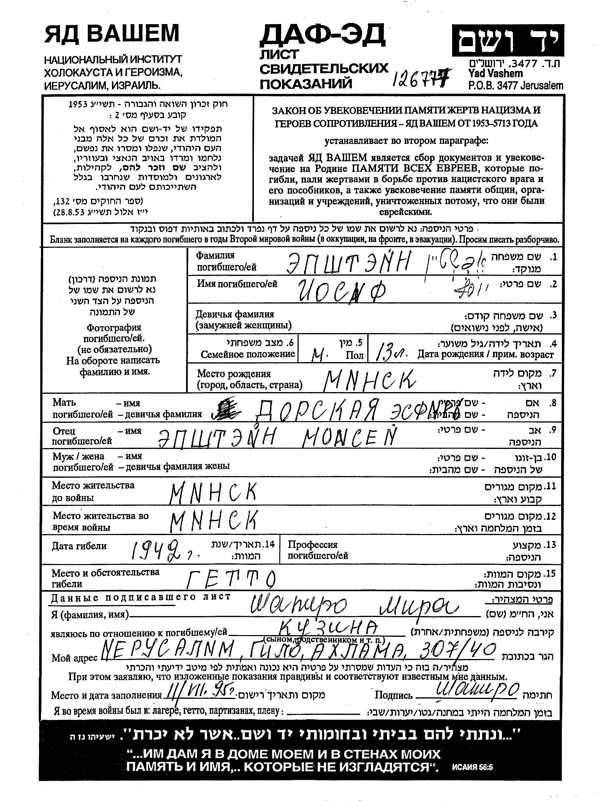 Iosif wurde in der Schoah ermordet. Todesort: unbekannt im Jahr 1942.