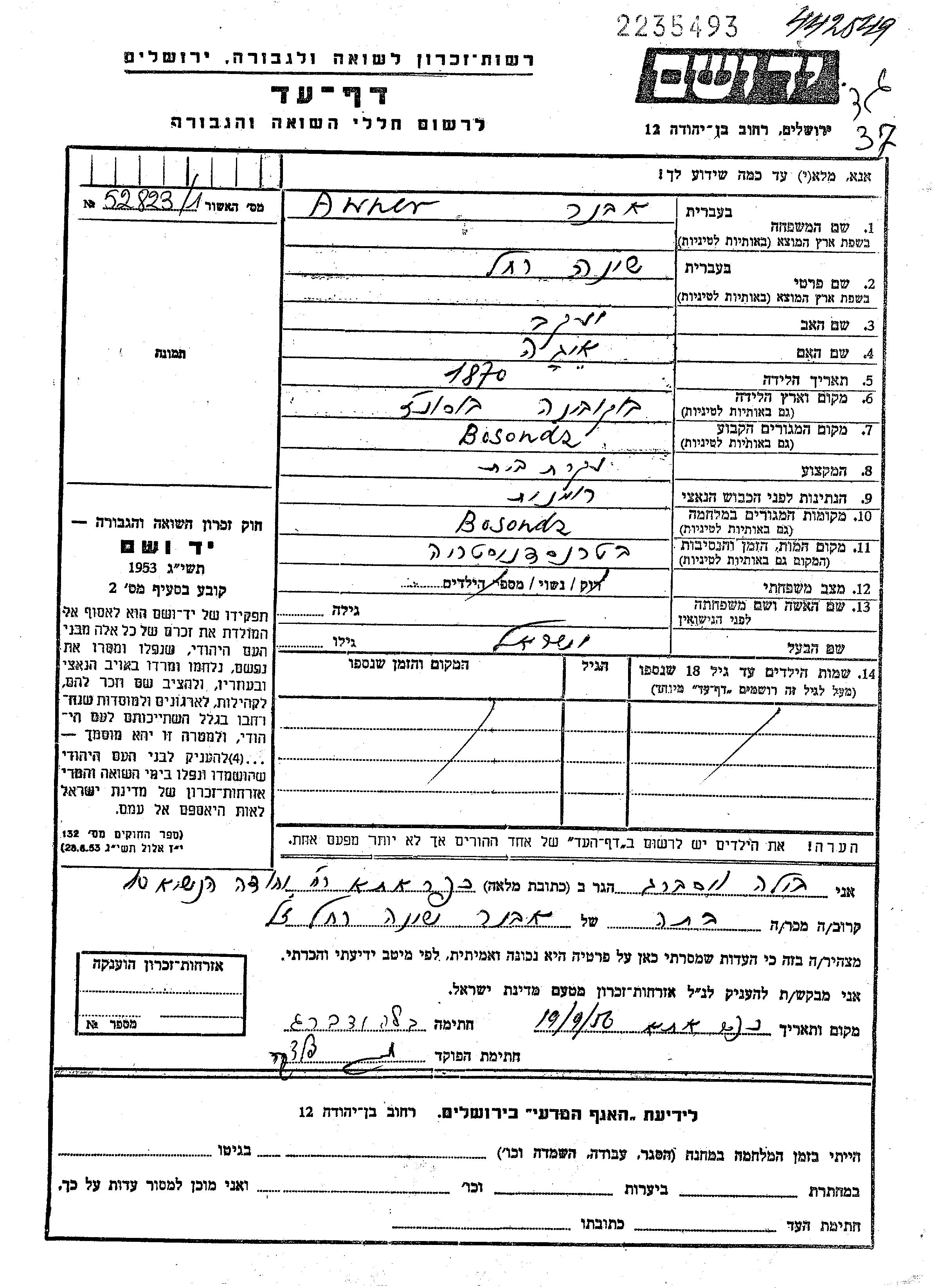 Sheina Rakhel Awner wurde im Jahr 1870 in Bosanci, Rumänien geboren. Sie war die Tochter von Yaakov und Eiga. Sie war Hausfrau und mit Israel Verheiratet. Vor dem Zweiten Weltkrieg lebte sie in Bosanci, Rumänien. Während des Krieges war sie in Bosanci, Rumänien.