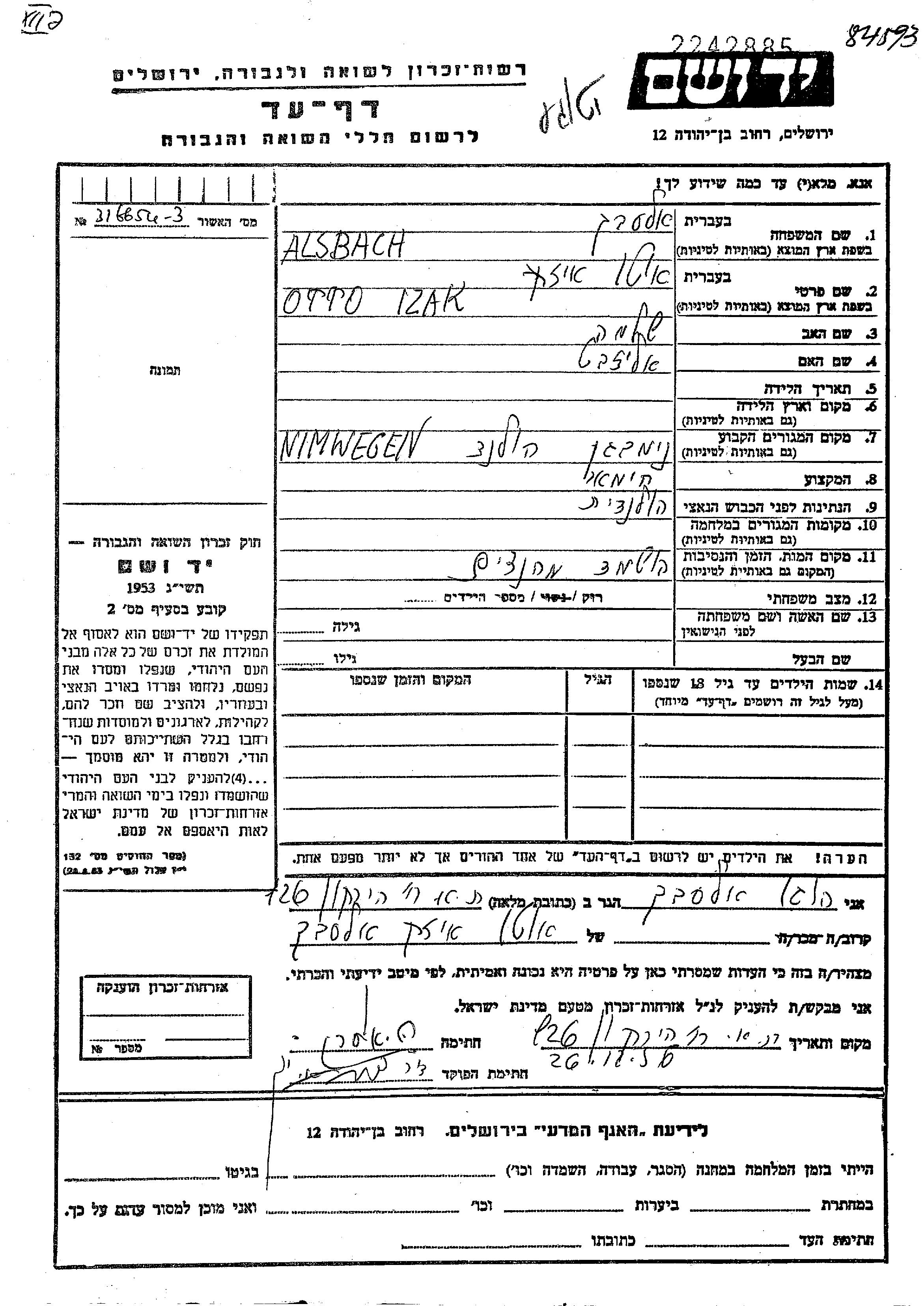 Otto Izak Alsbach wurde Er war der Sohn von Shlomo und Elizabeth. Er war Chemiker und Ledig. Vor dem Zweiten Weltkrieg lebte er in Nimwegen, Niederlande. Während des Krieges war er in Niederlande.